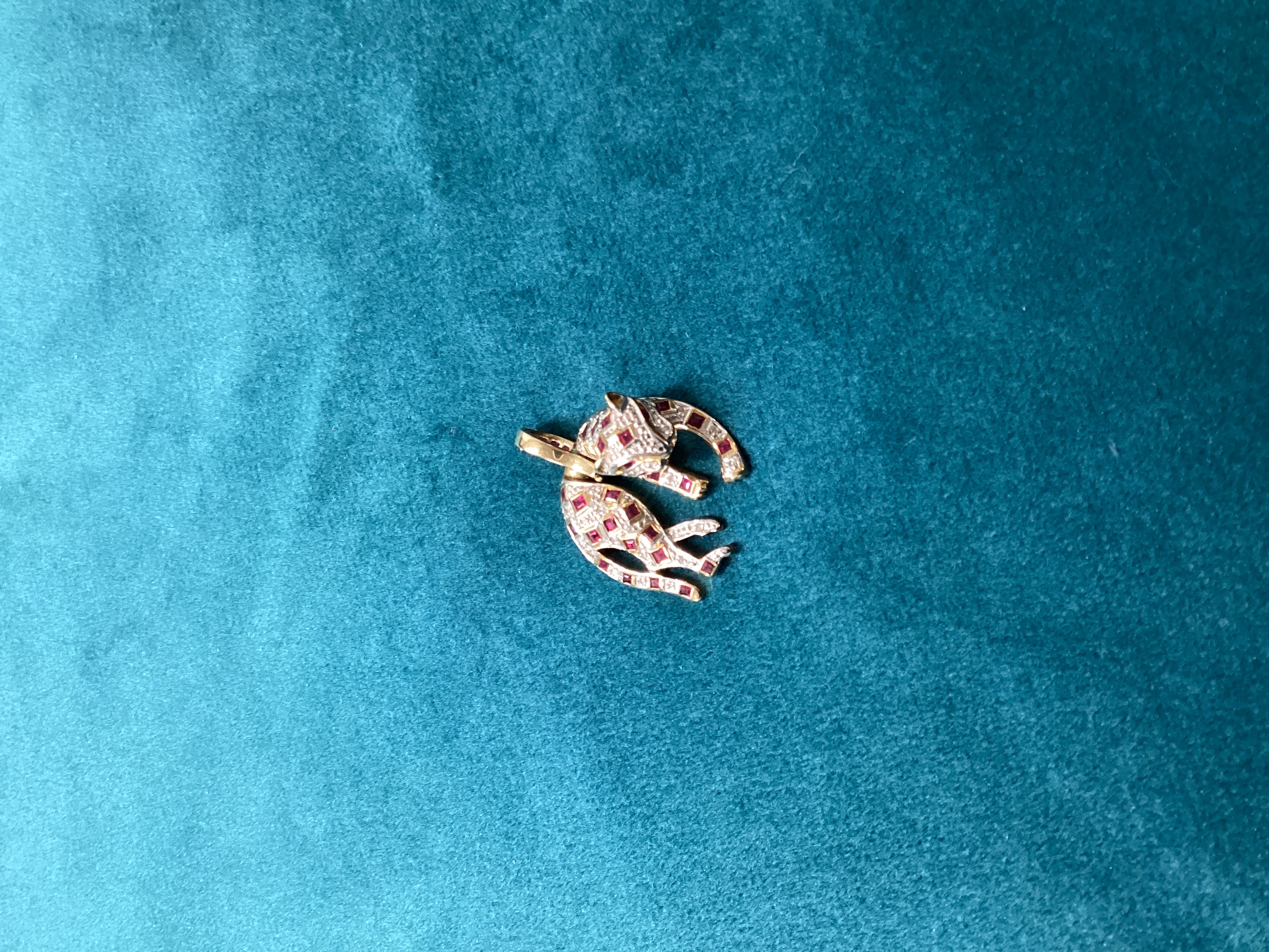 9ct gold diamond rubies panther pendant (5.29g)