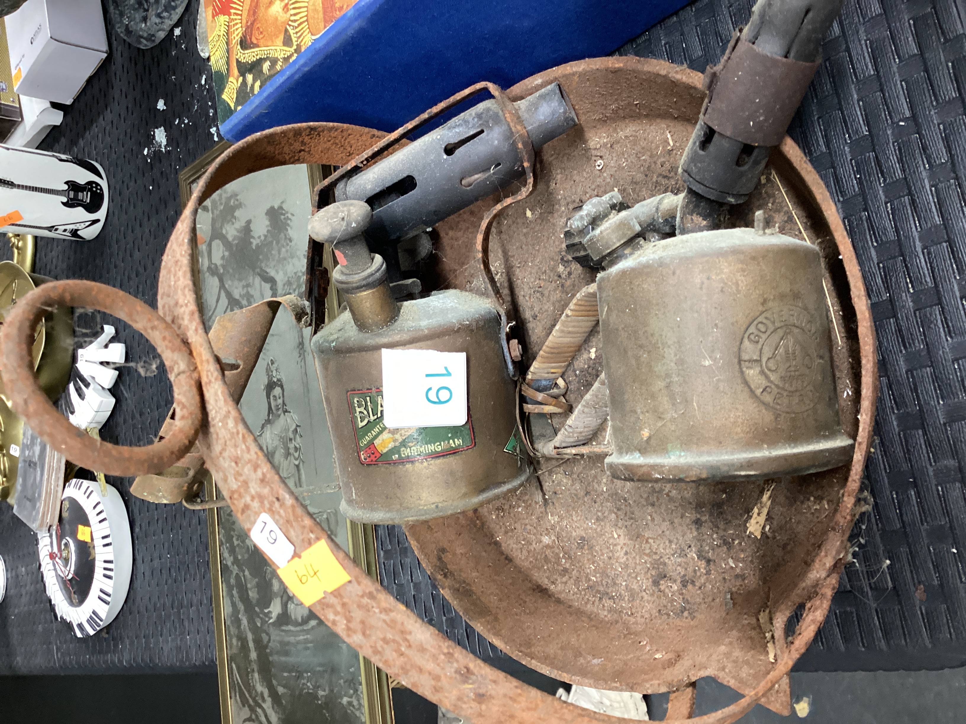 Old blow torches and metal dish