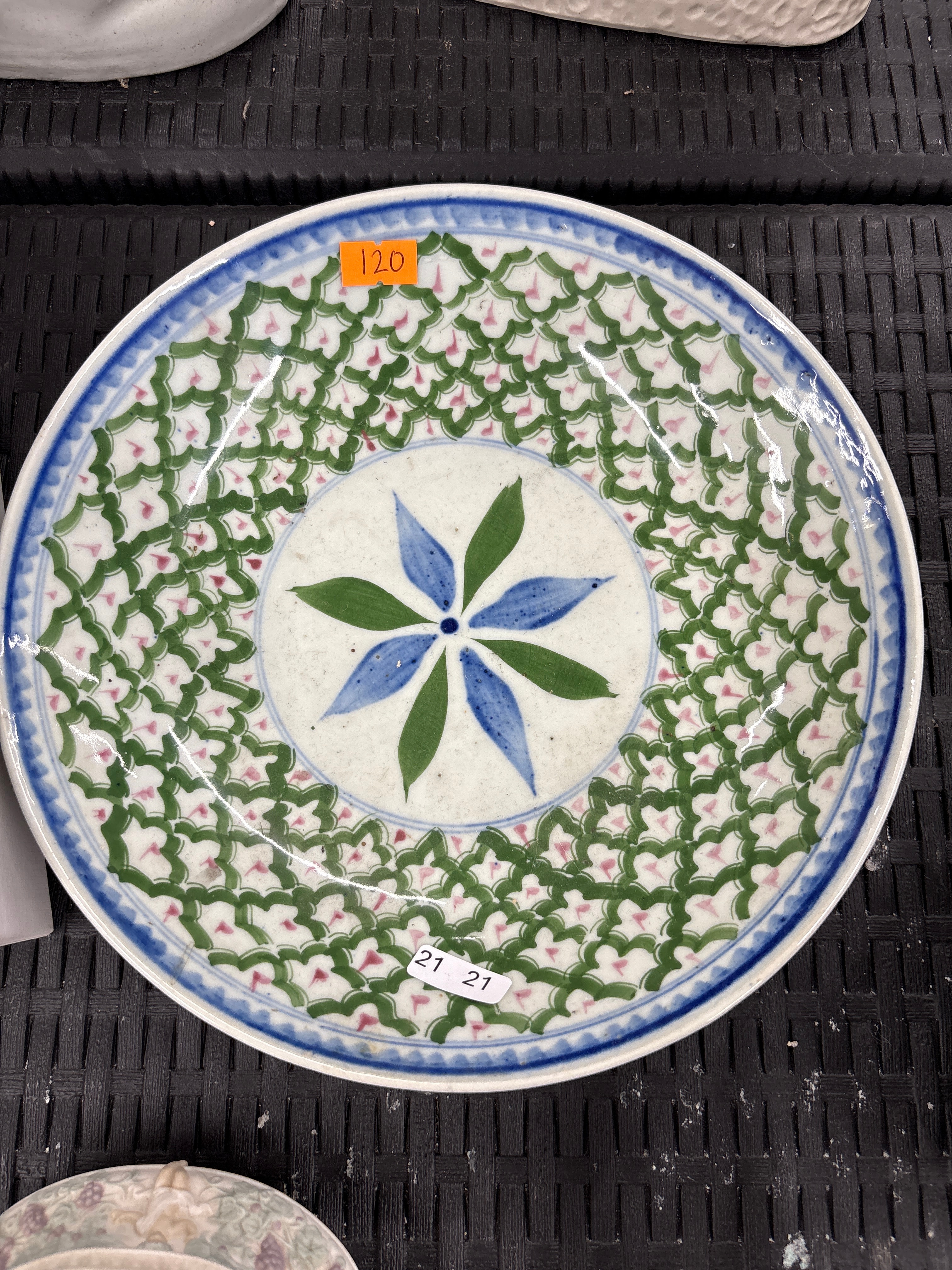 Antique Japanese Meiji Period Green Blue Red Sesame Medallion Plate