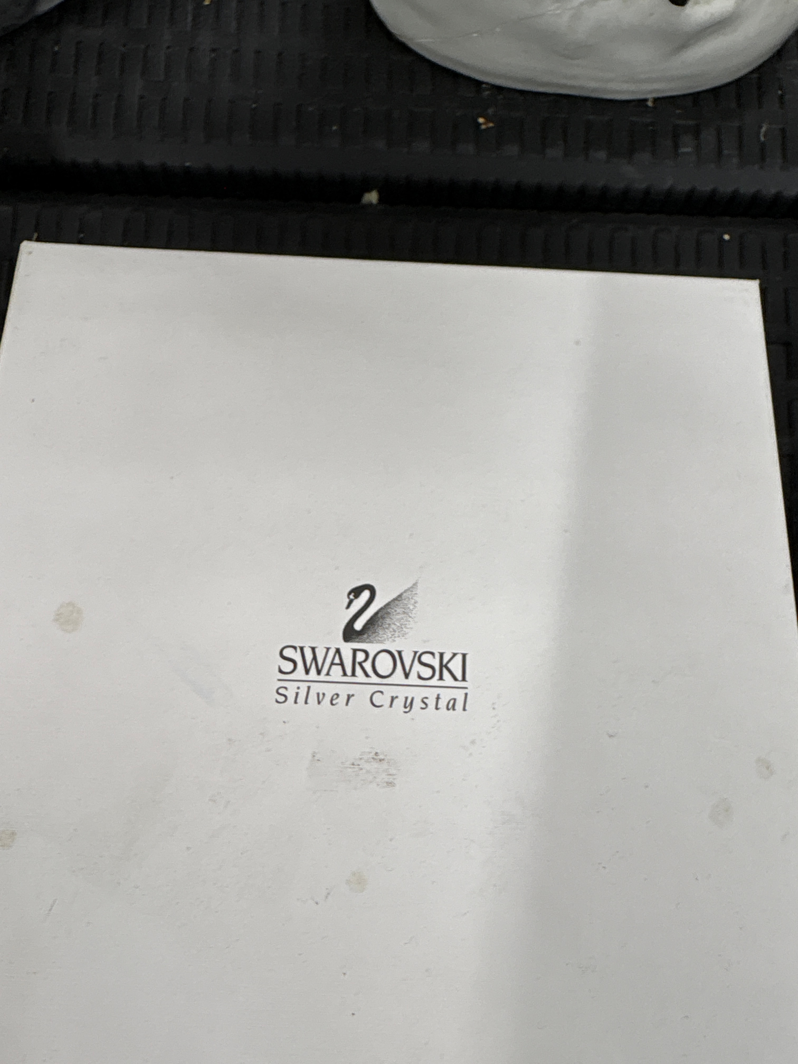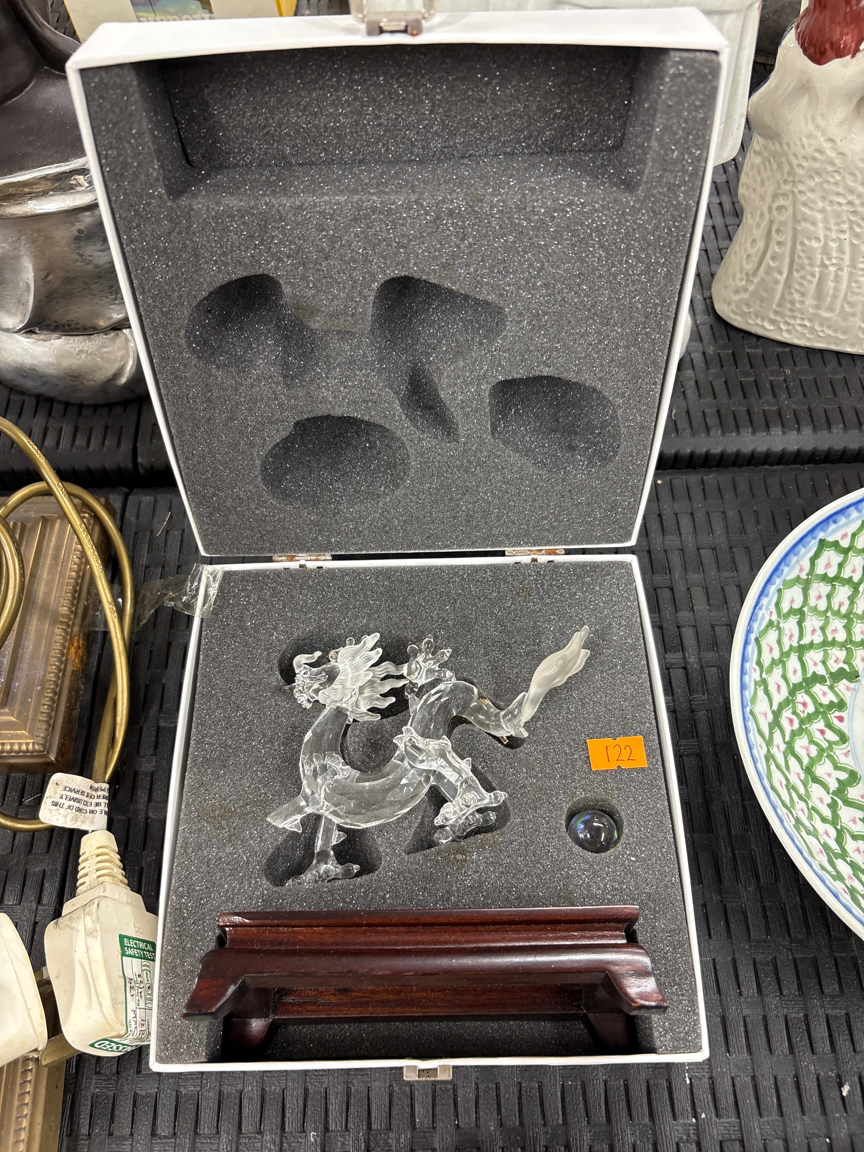 A Swarovski Silver Crystal Dragon Figurine with Original Case and Stand