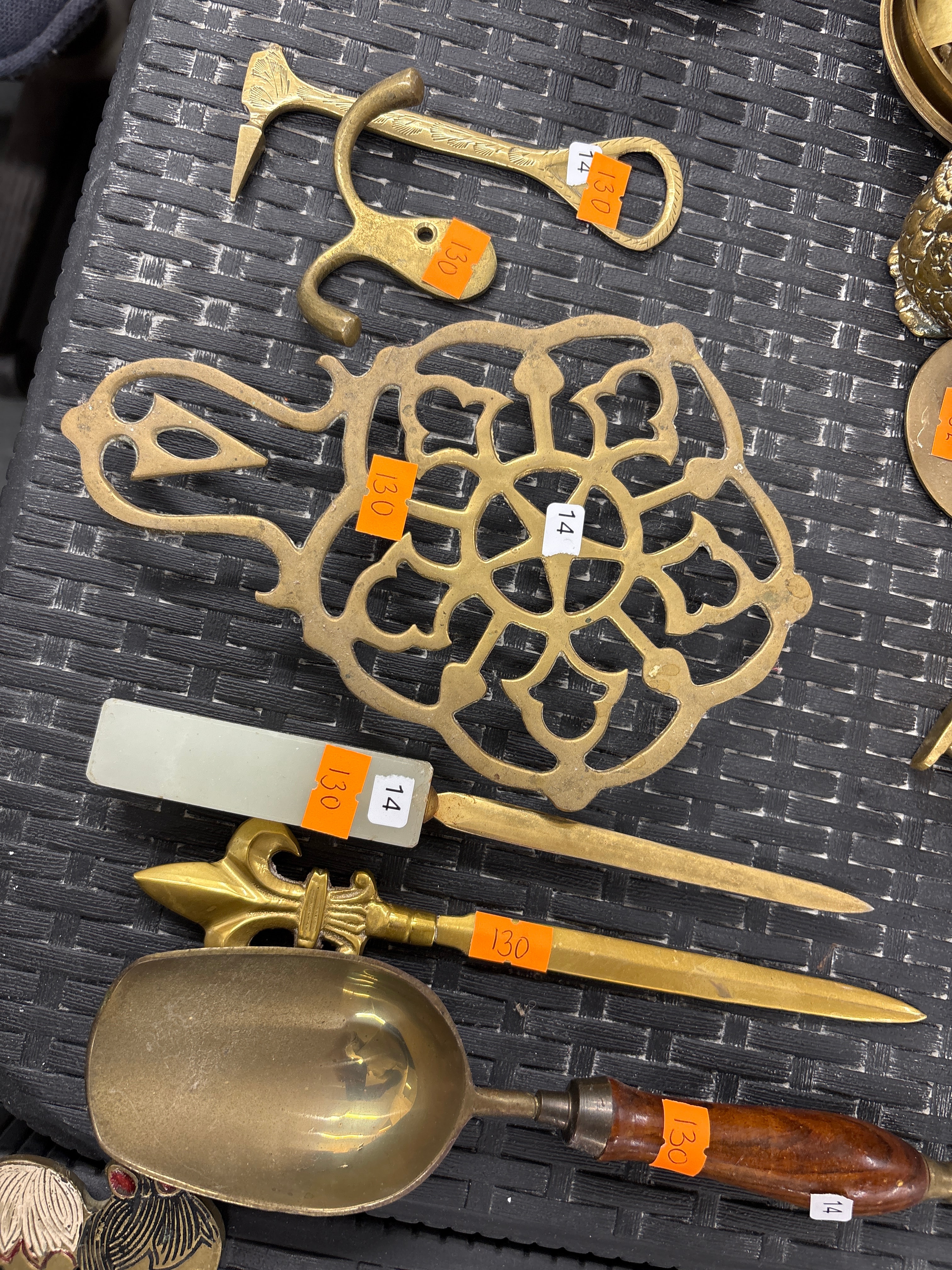 A Collection of Vintage Brass Decorative and Utilitarian Objects, including a Turkish Trivet
