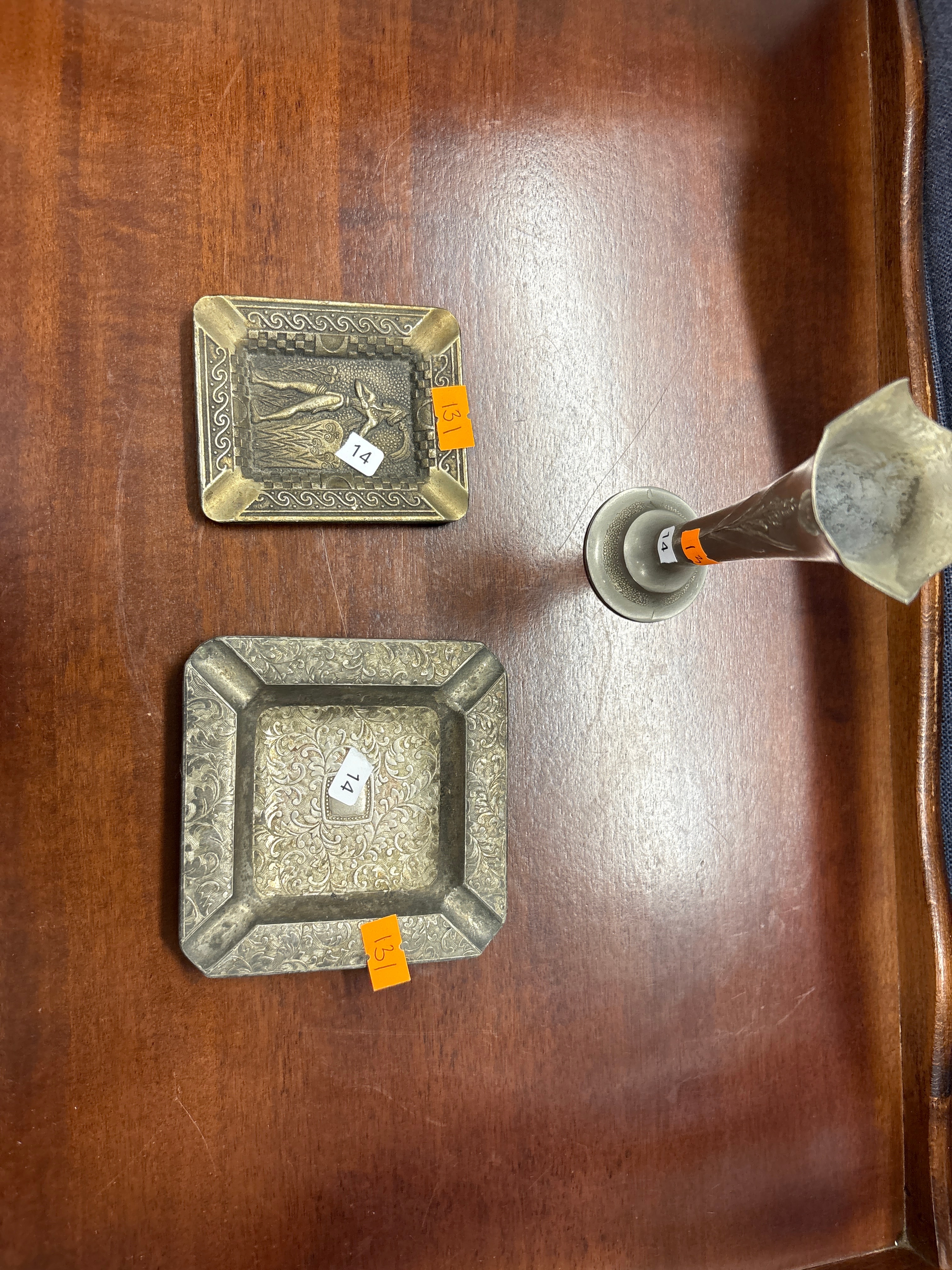 Two Plated Metal Ashtrays and a Decorative Metal...