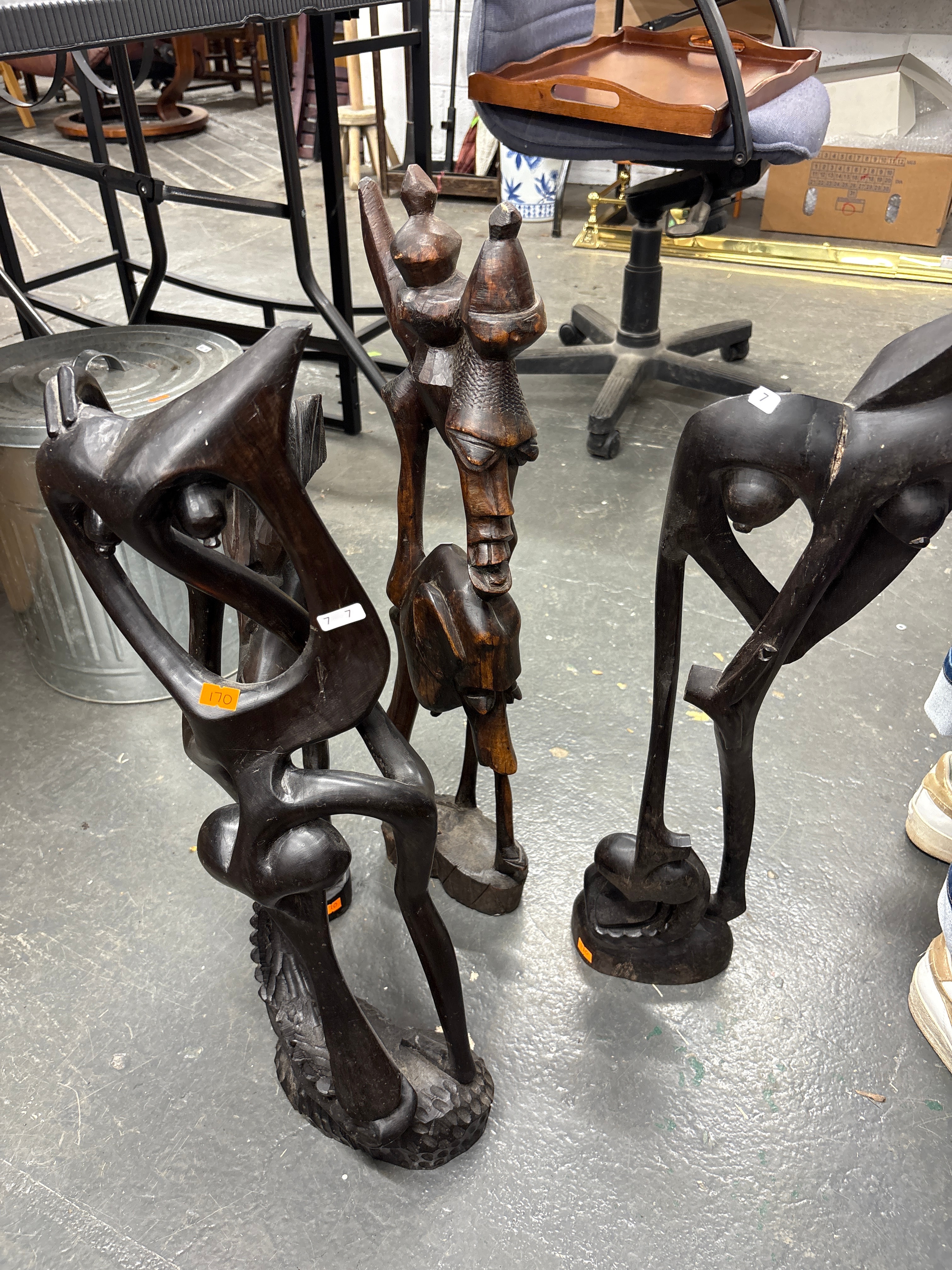 A Group of Three African Hand-Carved Wood Sculptures