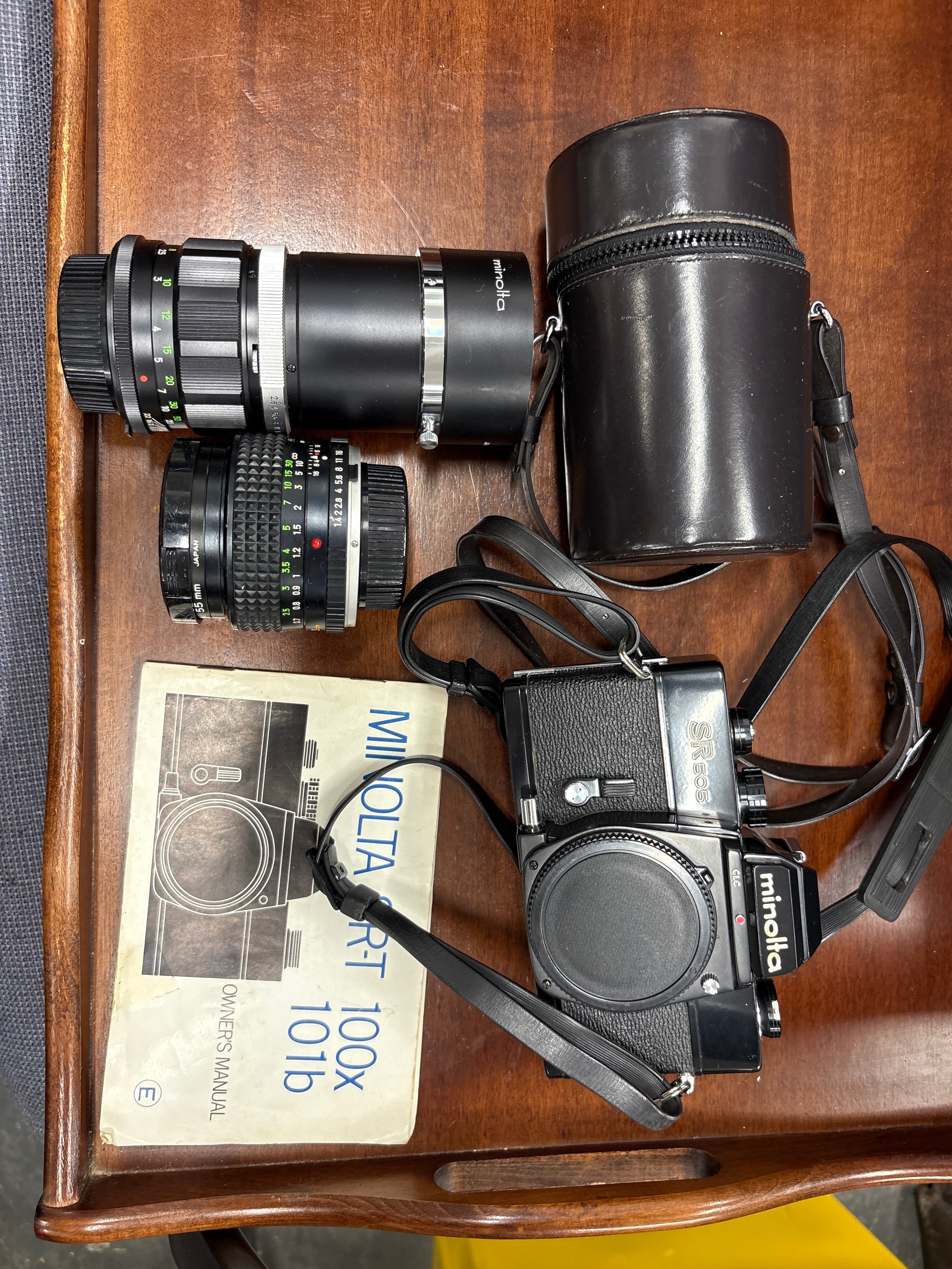 A Minolta SR 505 35mm SLR Camera System with Minolta 135mm f/2.8 MC Tele Rokker-PF Lens
