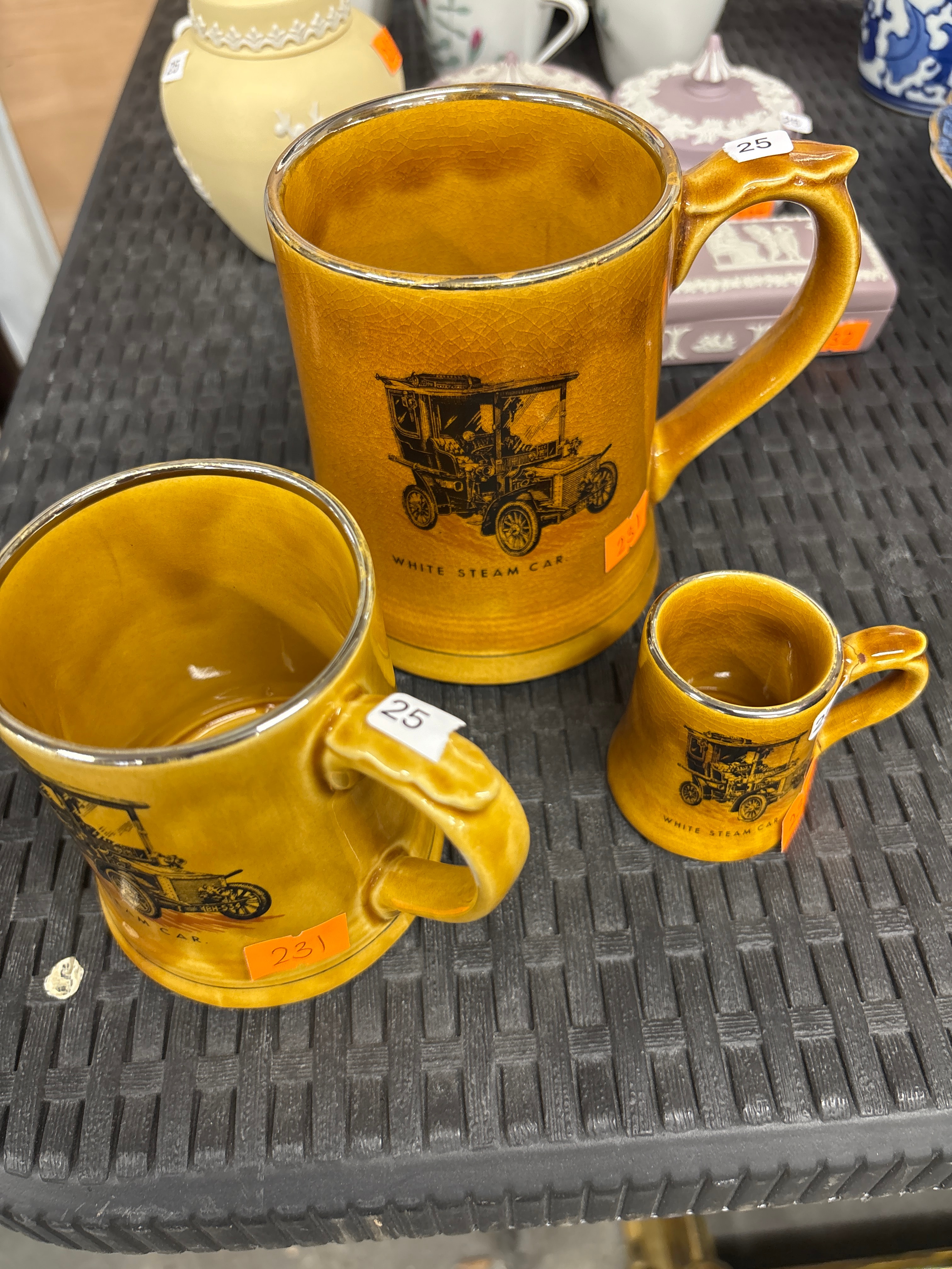 A Set of Three Moko by Wade ‘Veteran Cars’ Ceramic Tankards