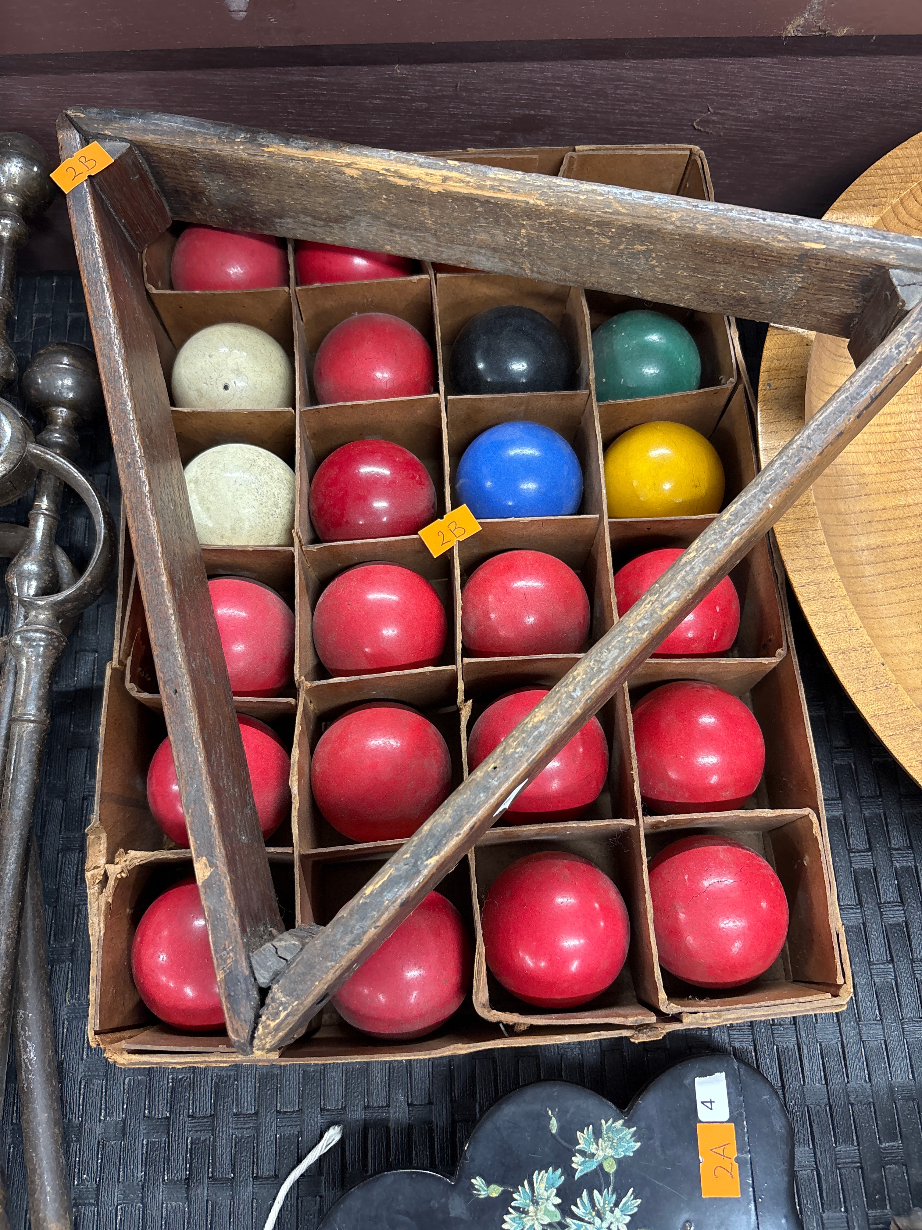 A Set of Vintage 1920s Crystalate Snooker Pool Balls with Rack