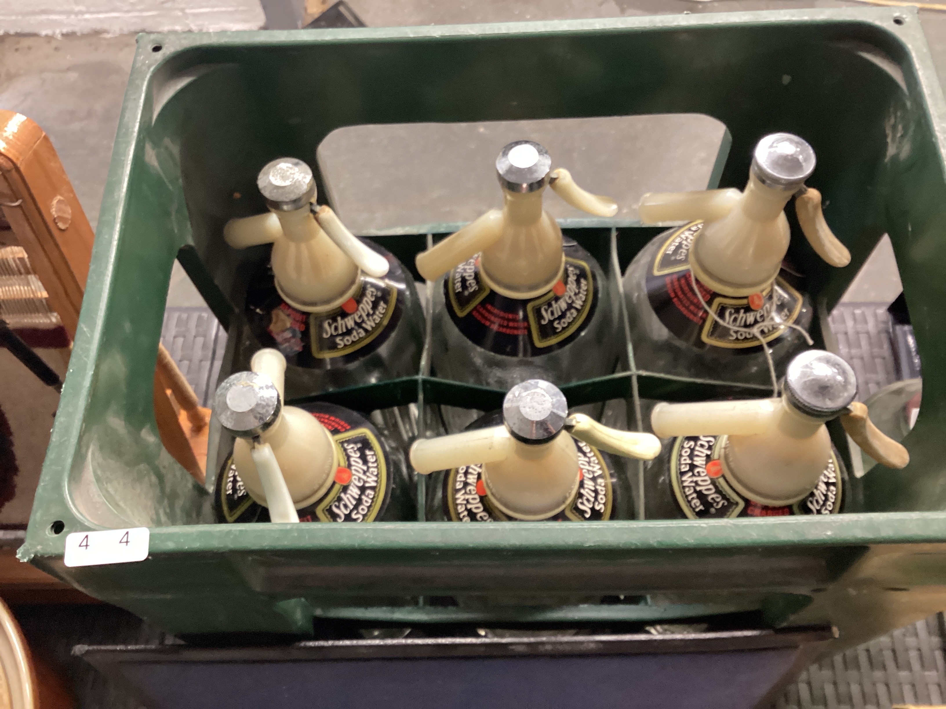 Set of 6 Schweppes soda water bottle with crate