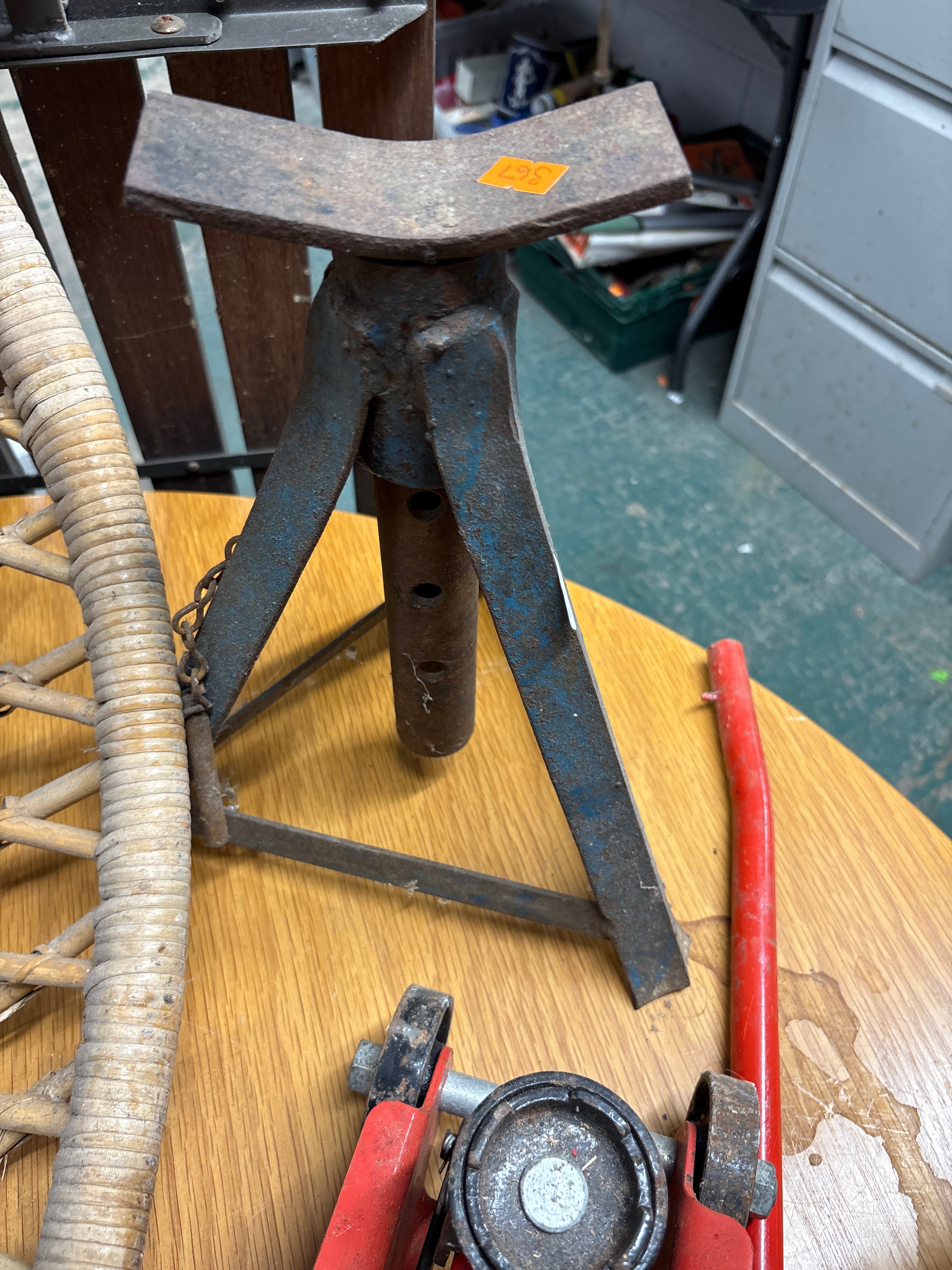 A MEGAL 2000 kg Hydraulic Trolley Jack and a Craftsman Jack Stand