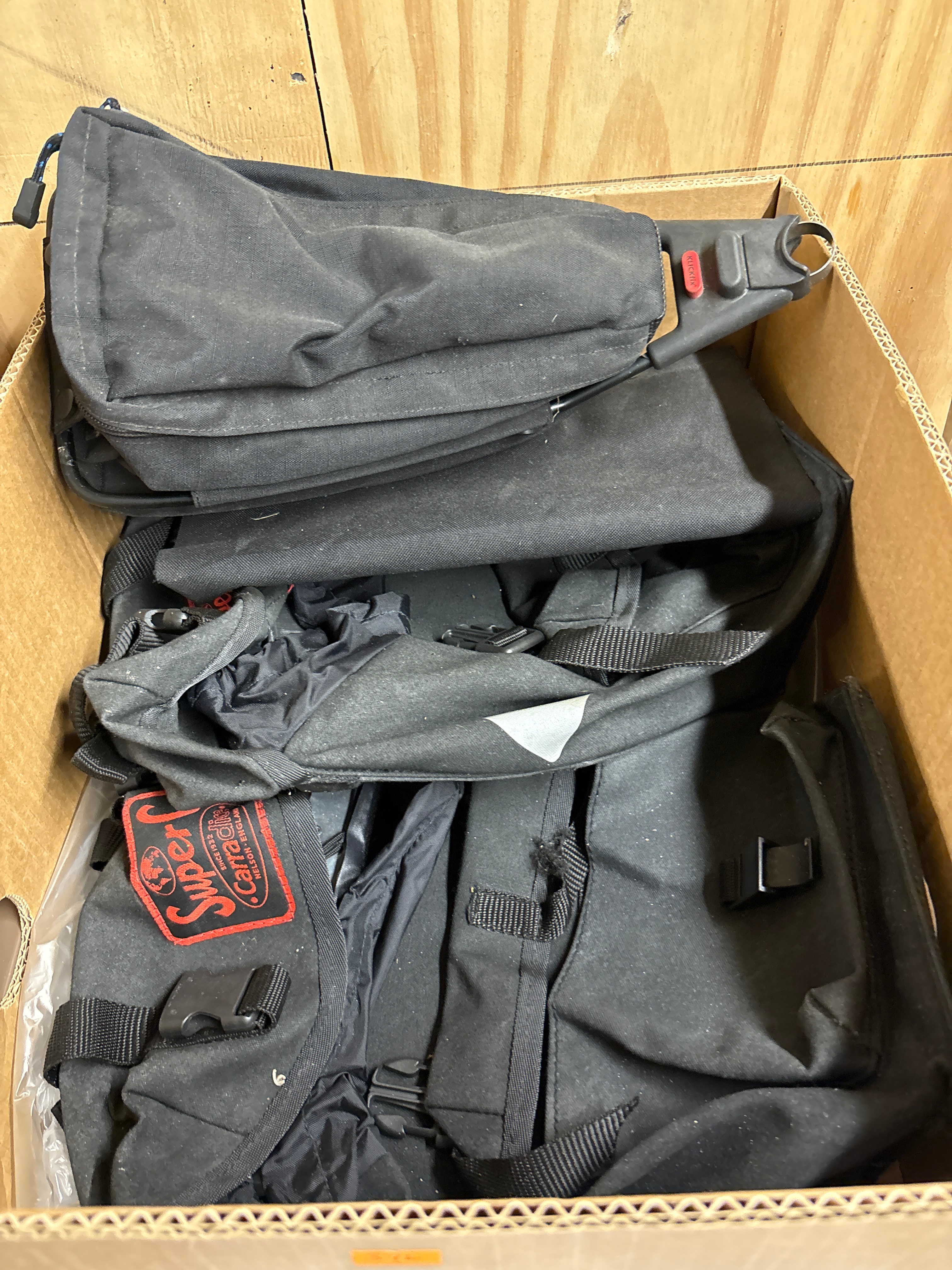 A Group of Super Cara GEAR Black Fabric Roller Gear Bags and Modular Frame System