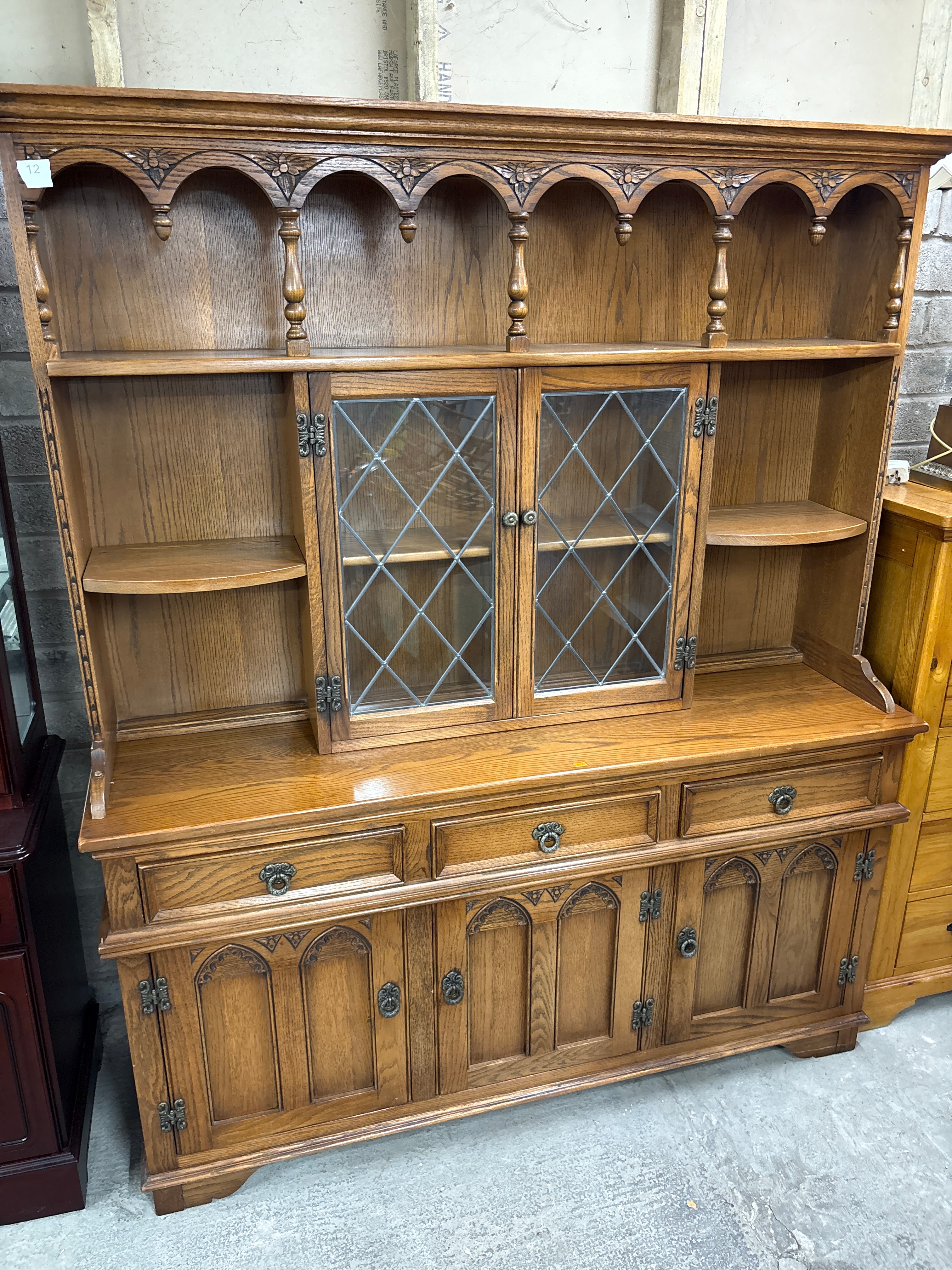A Jacobean/Gothic Revival Style Oak Two-Part Display Hutch