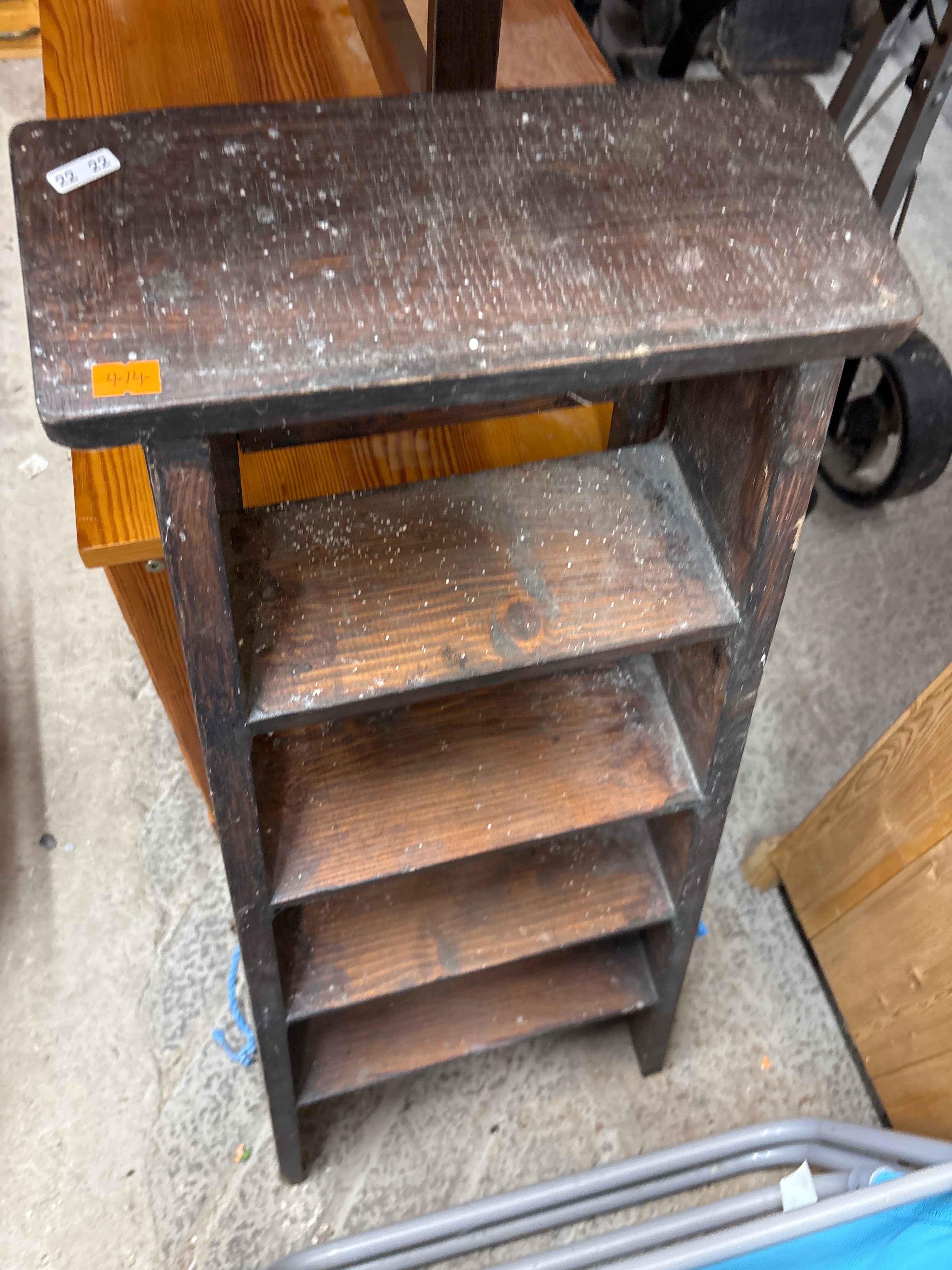 An Early 20th Century Mission Style Dark-Stained Wooden Shelving Unit