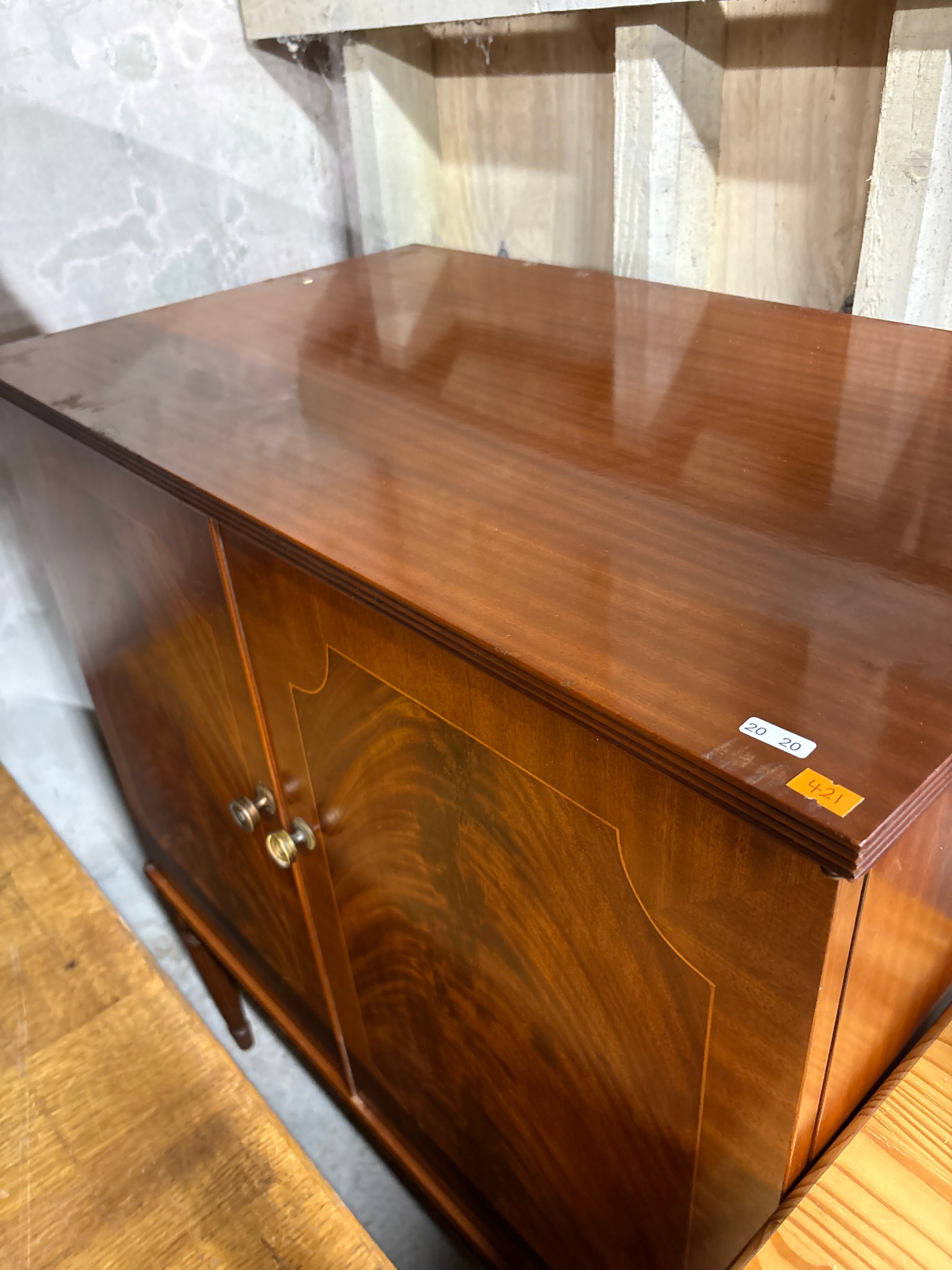 A Traditional Style Mahogany Veneered Two-Door Cabinet with String Inlay