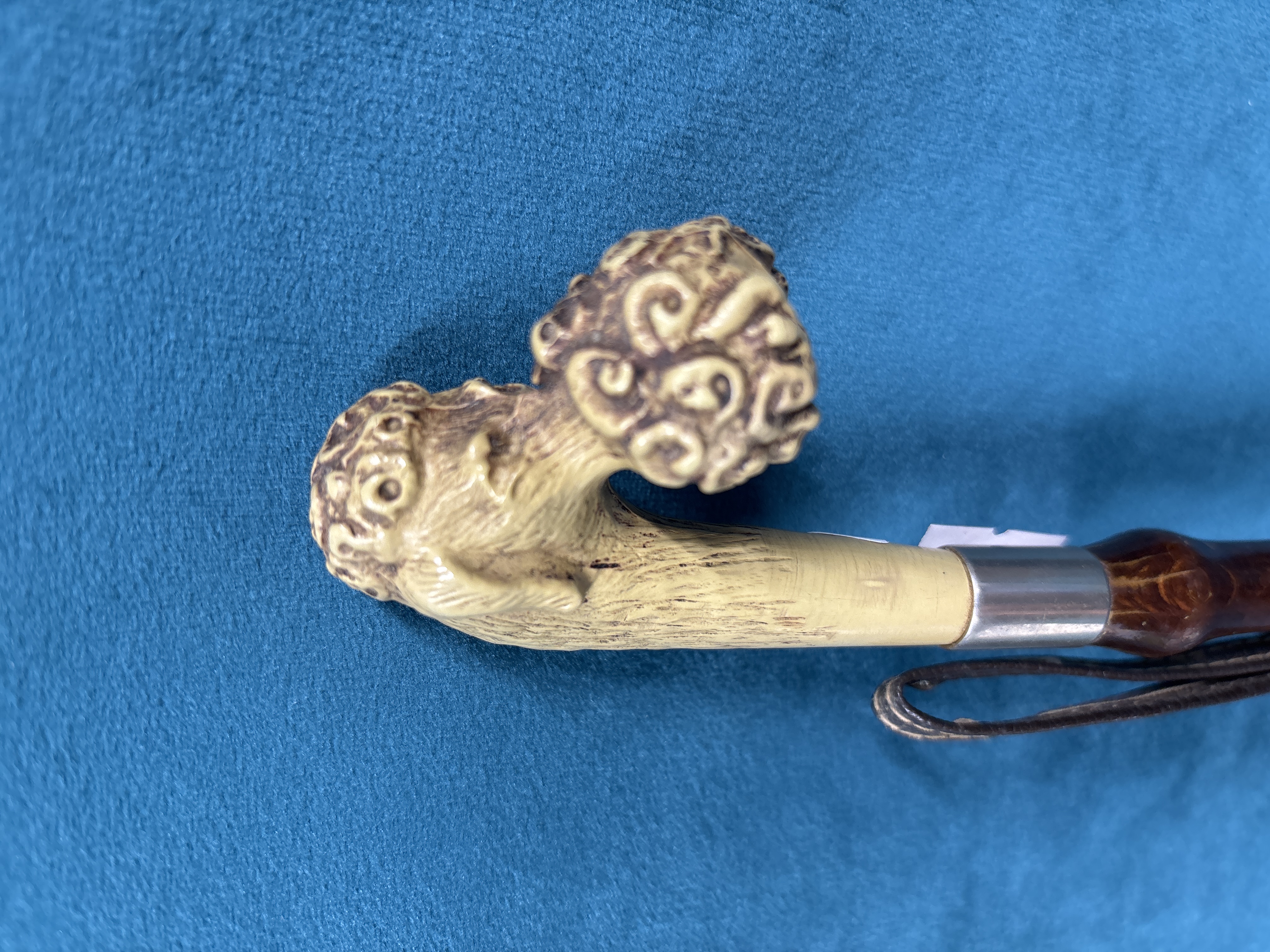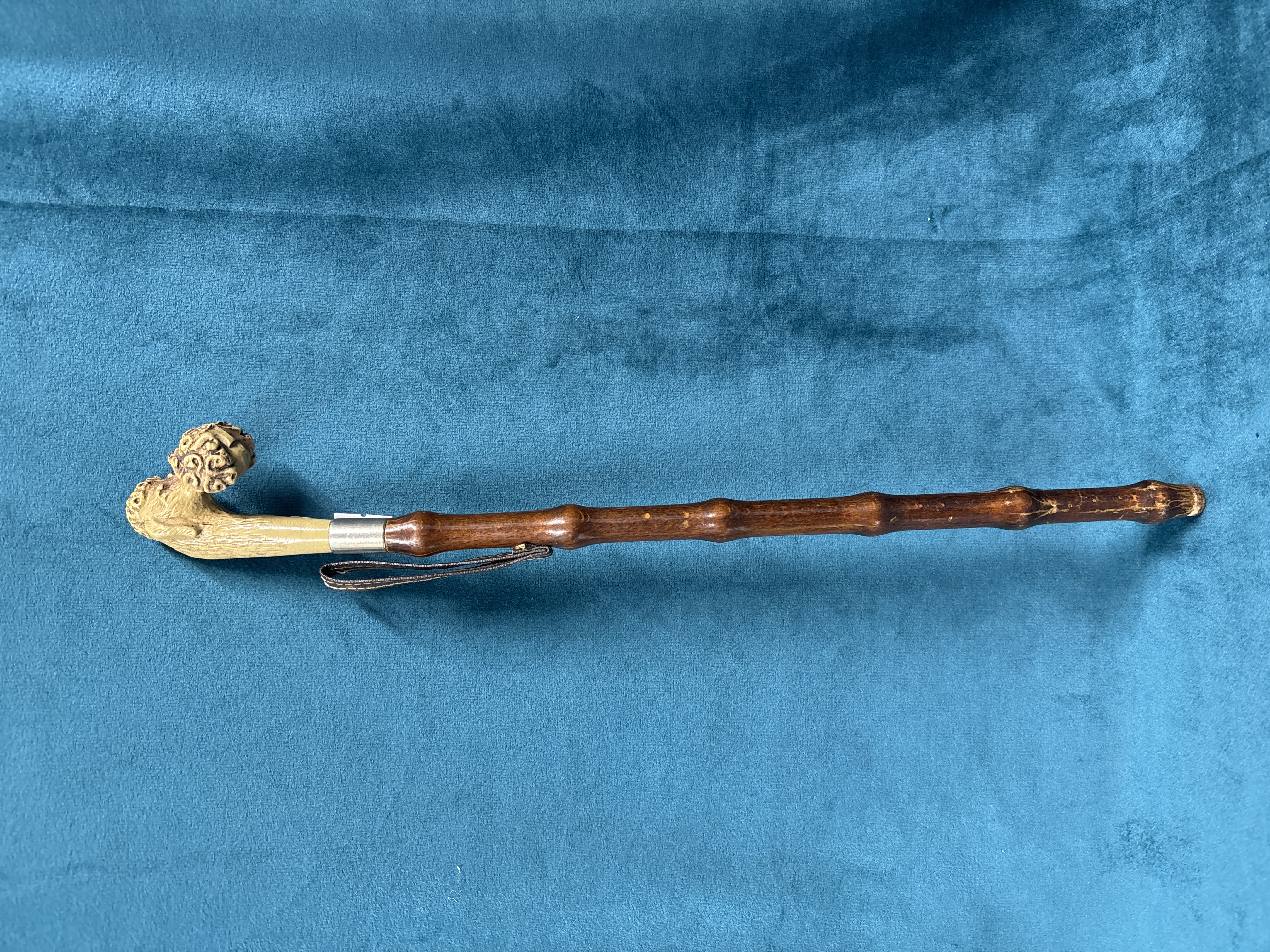 Wooden riding crop with carved dog head