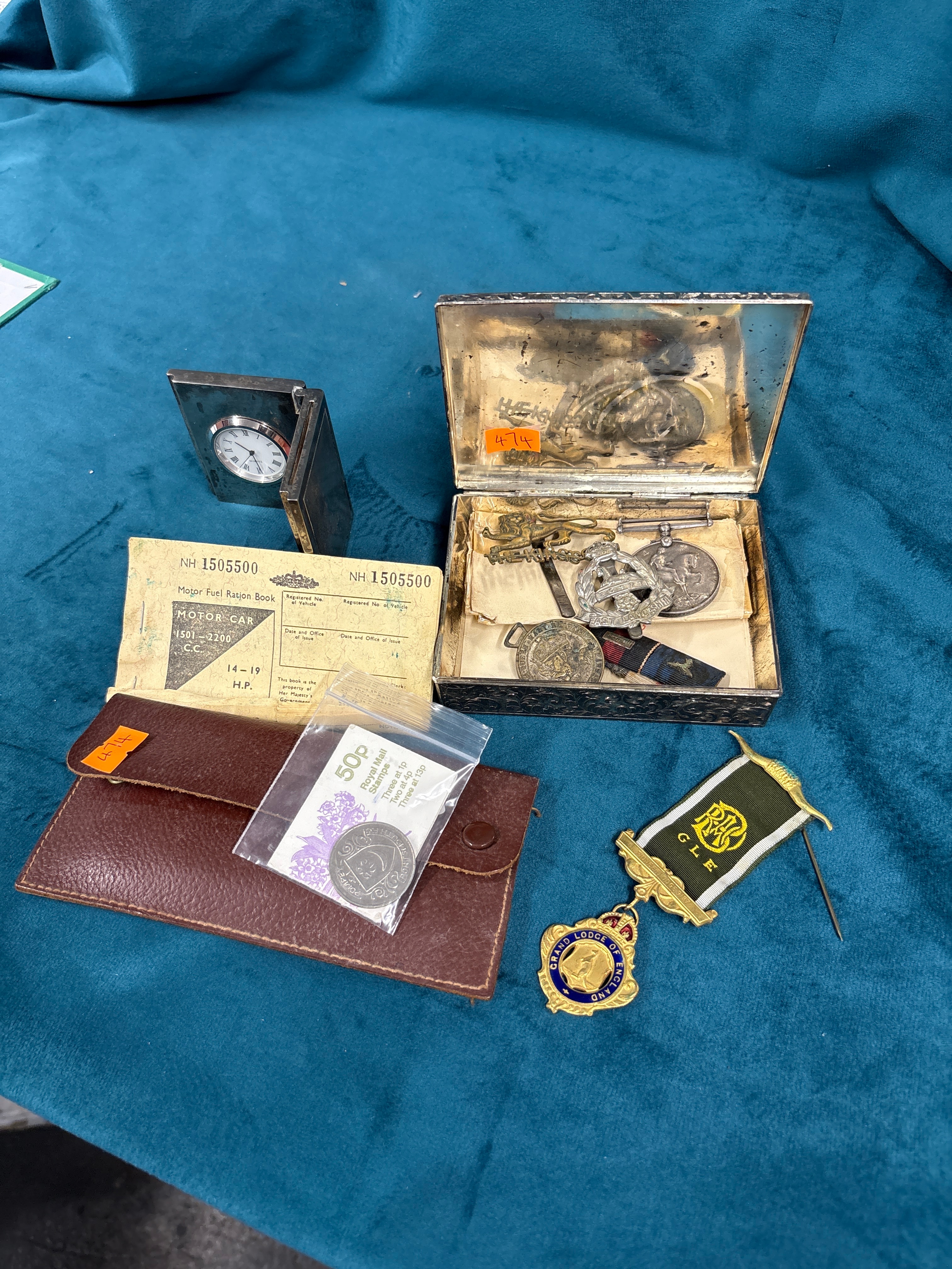 A Silver Box Containing a Collection of Militaria and Ephemera