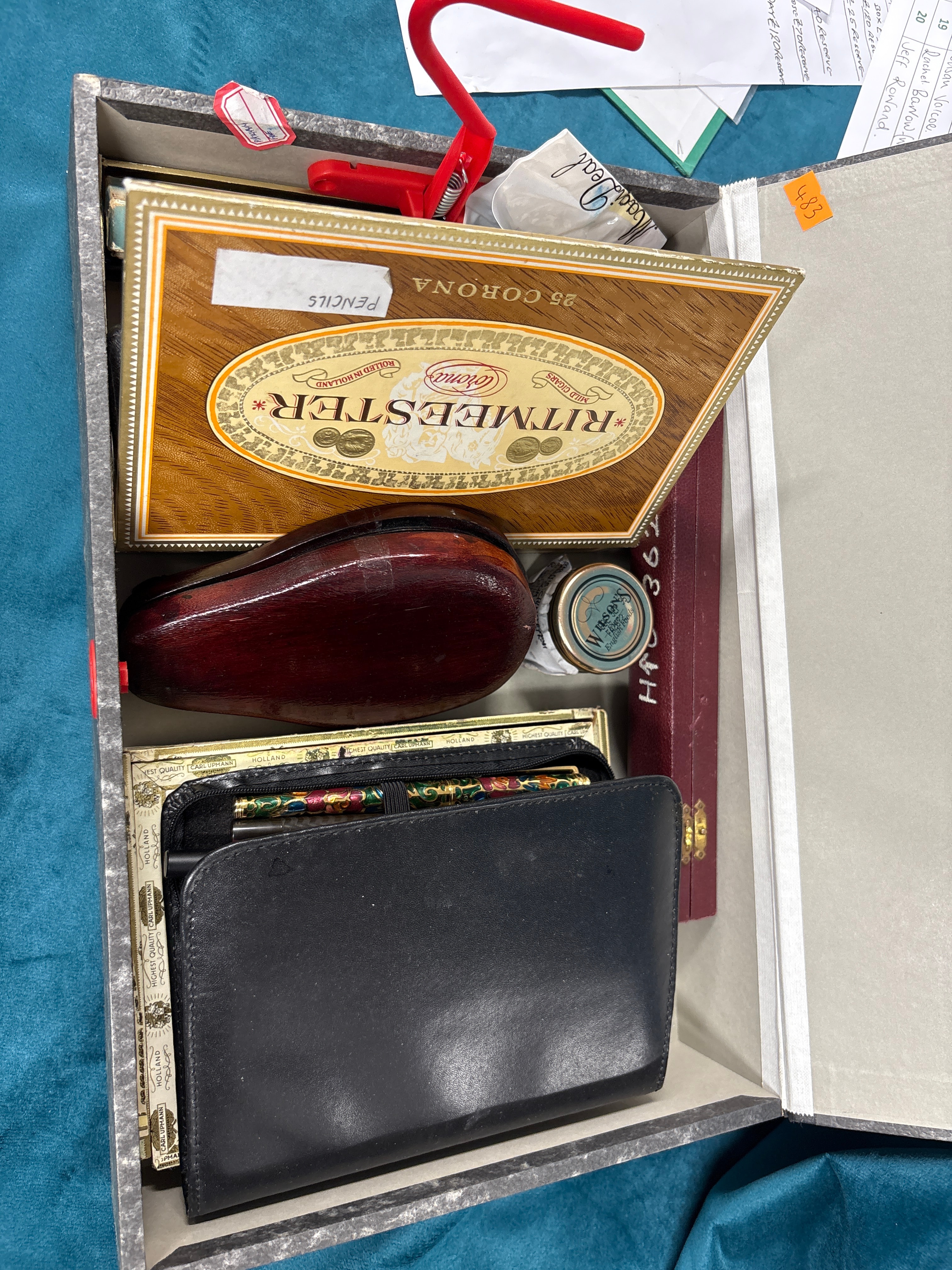 A Collection of Personal Effects including Ritmeester and Carl Upmann Cigar Boxes, a Pipe, and a Pen