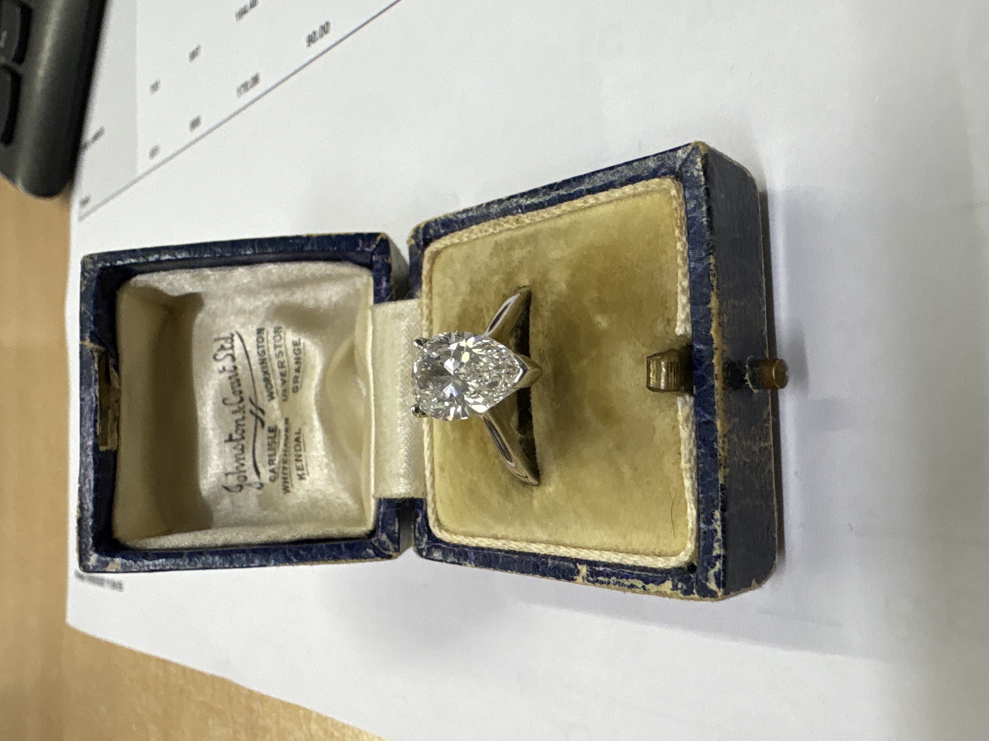 3ct pear shaped diamond ring set in platinum