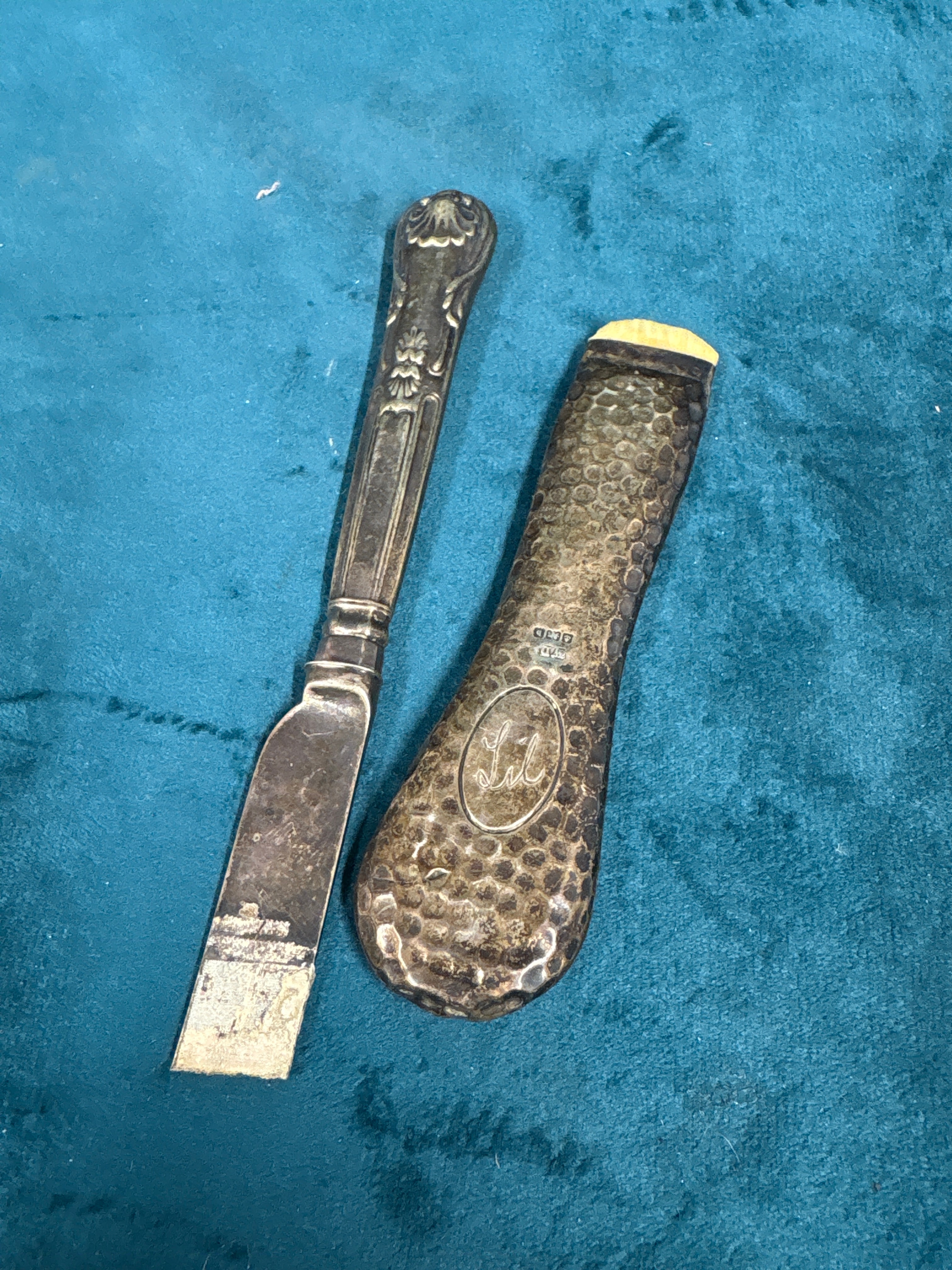 A Pair of Sterling Silver Butter Knife and Hammered Object, Late 19th/Early 20th Century