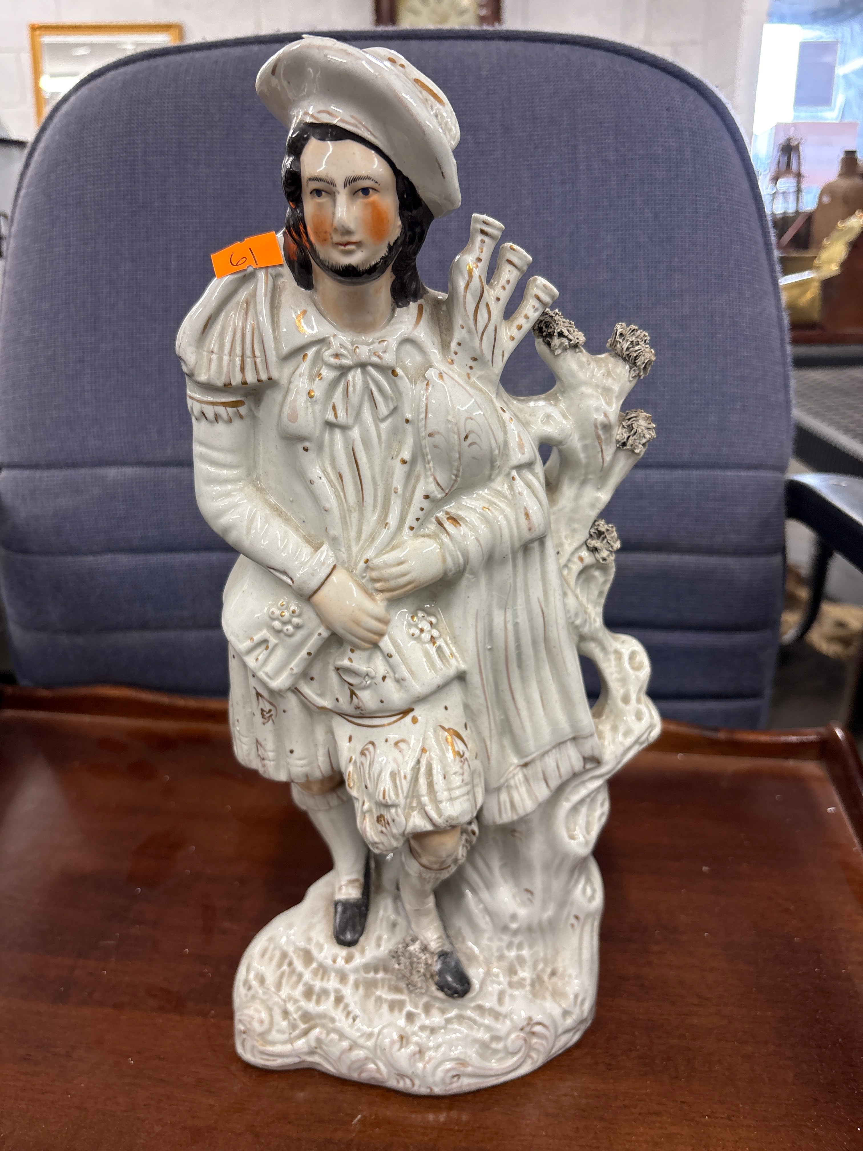Antique Staffordshire Glazed Ceramic Bagpiper Figurine