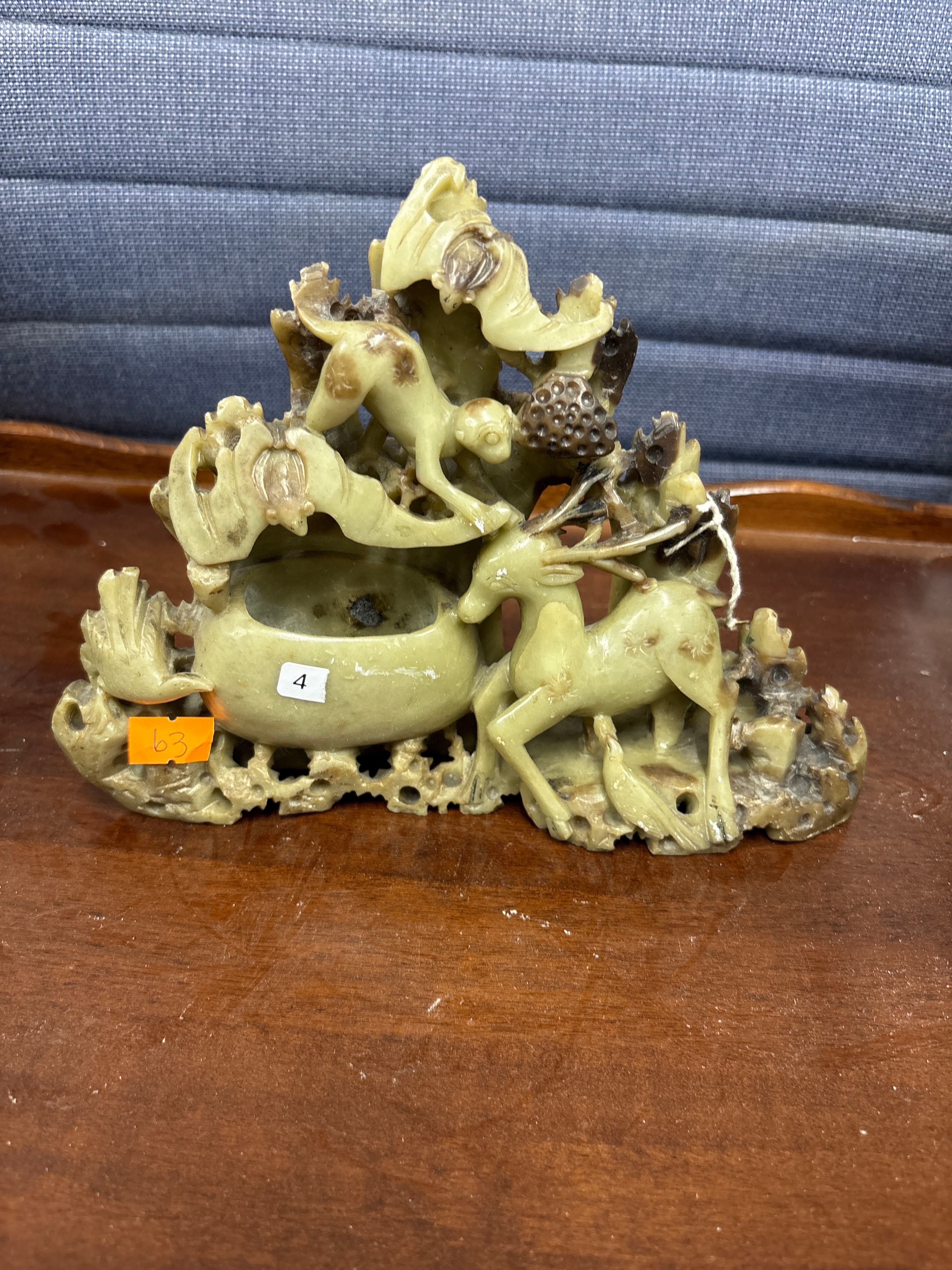 Chinese Hand Carved Soapstone Deer Landscape Brush Washer