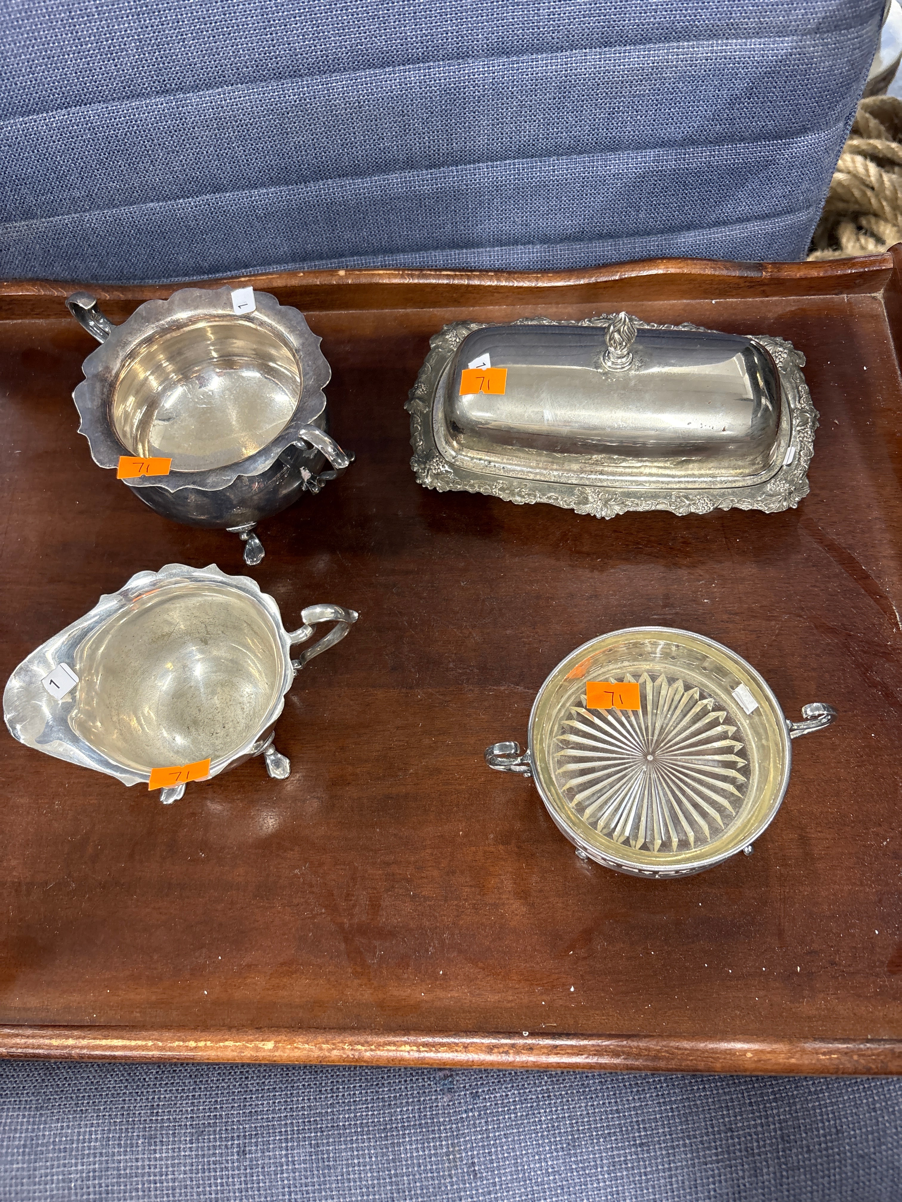 A Group of Silver-Plated Serving Pieces, including a Countess Pattern Covered Butter Dish