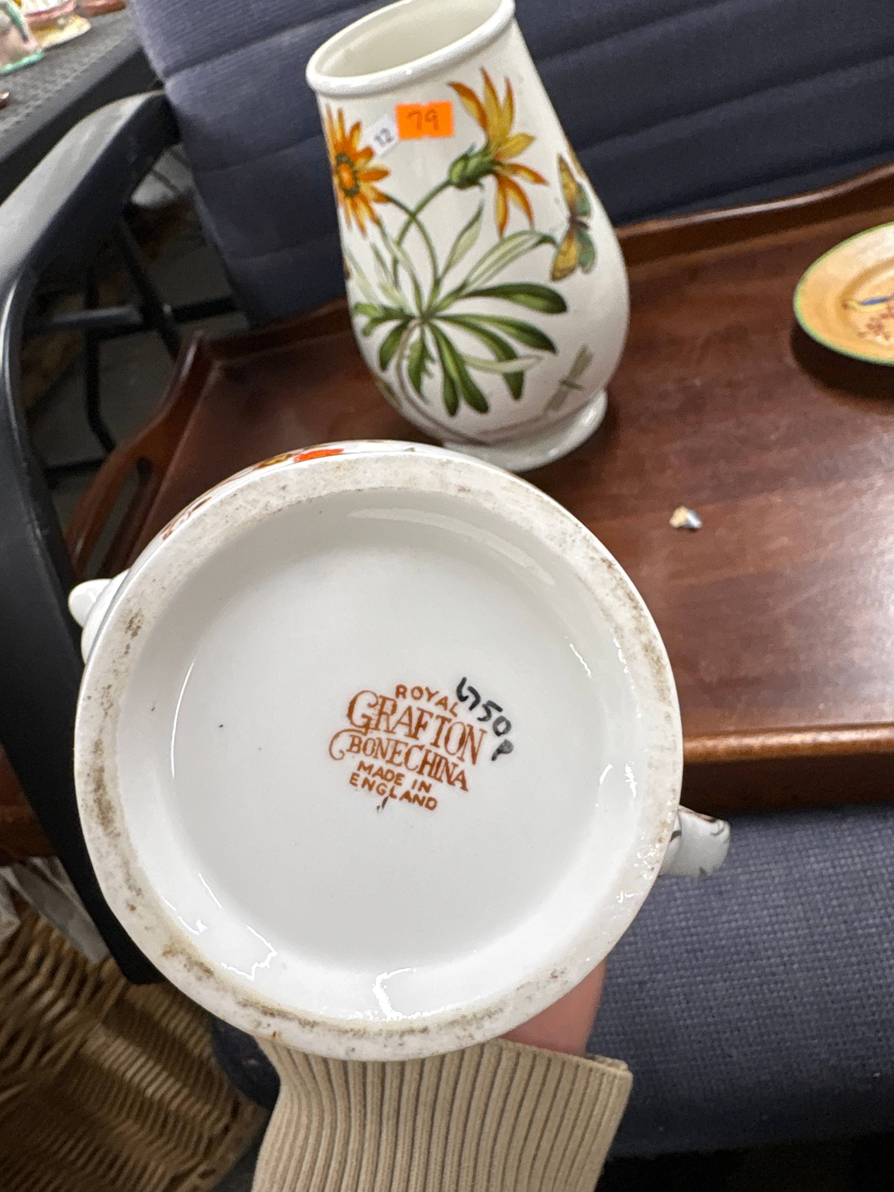A Portmeirion ‘The Botanic Garden’ Arctotis Grandiflora Vase and a Royal Grafton Chinoiserie Teapot with Saucer