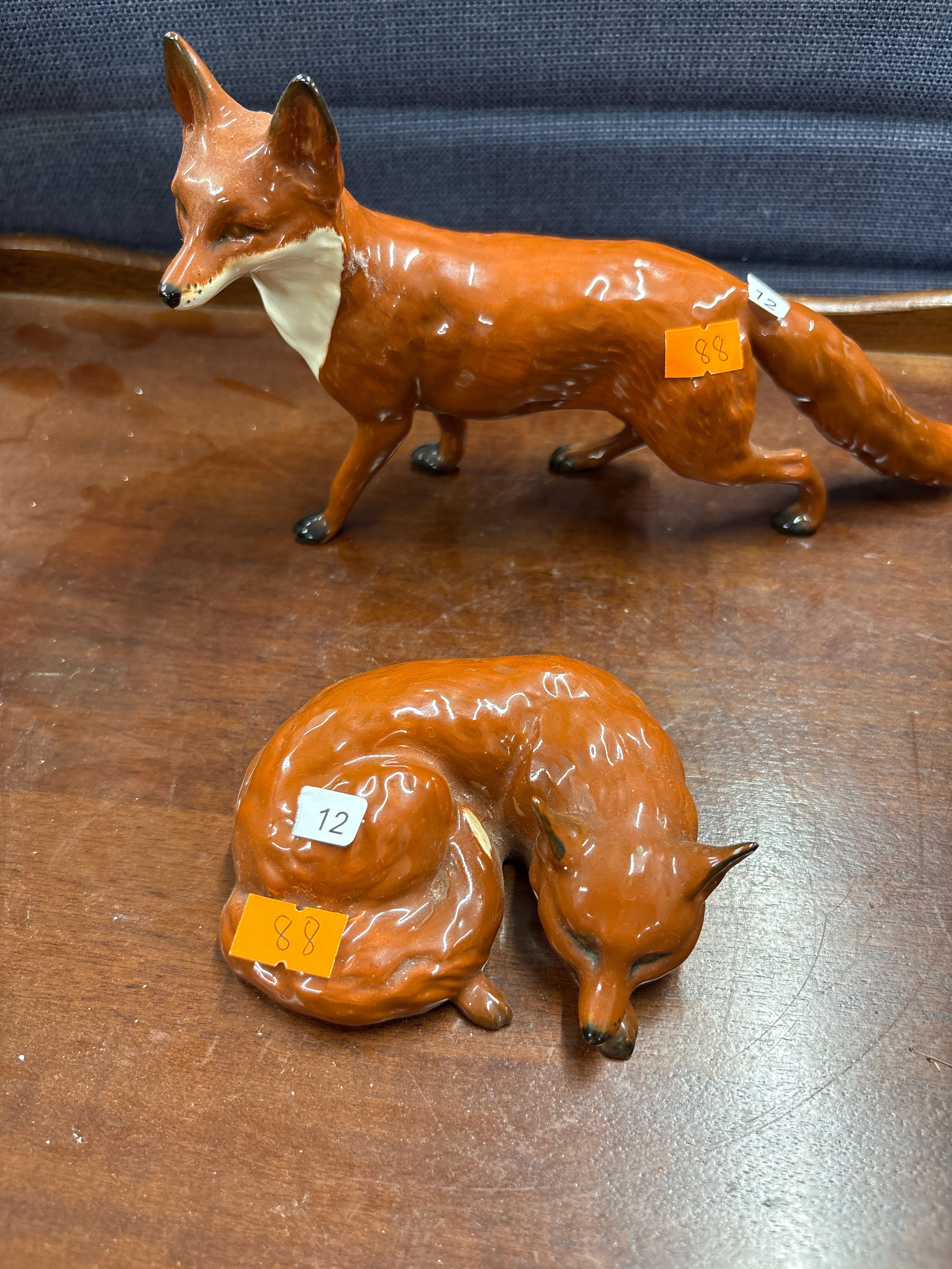 A Pair of Beswick Fox Figurines, one standing, one curled
