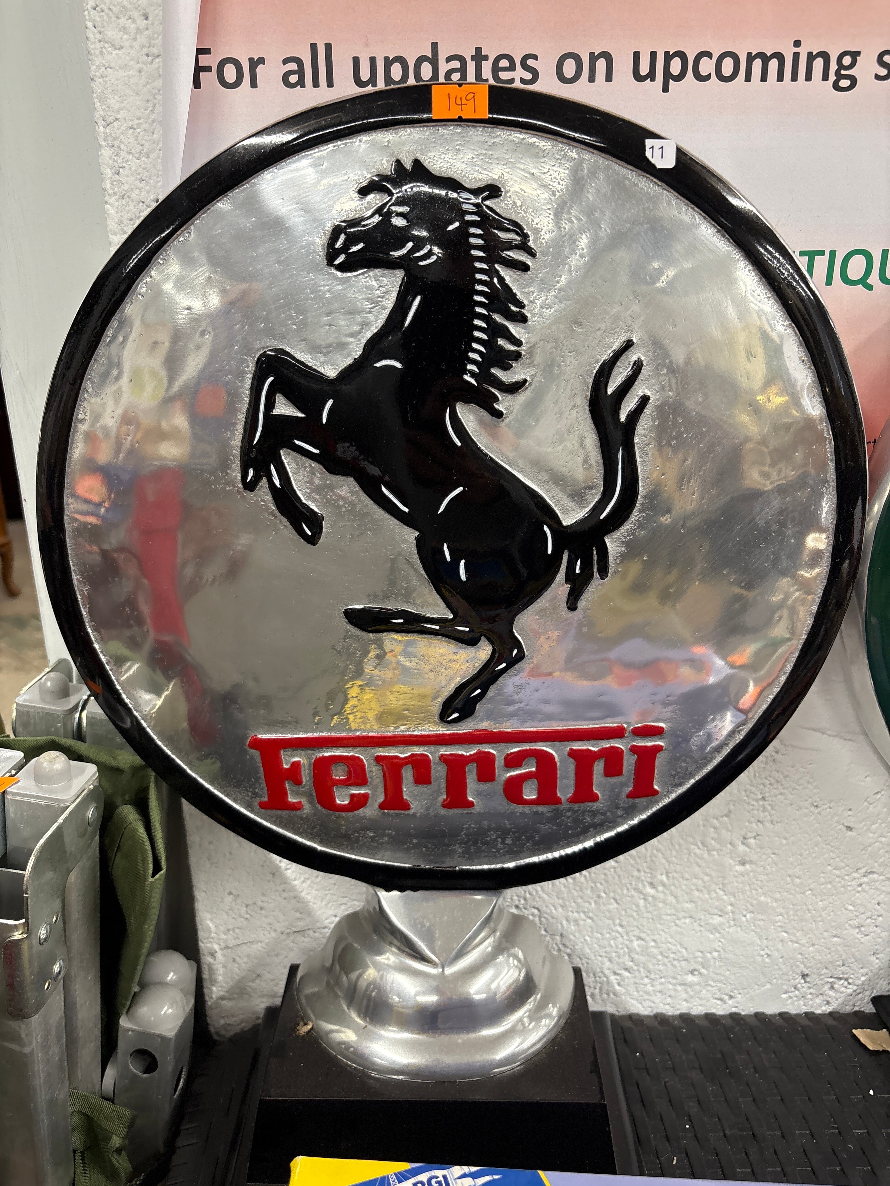 A Ferrari Sign on Pedestal Base