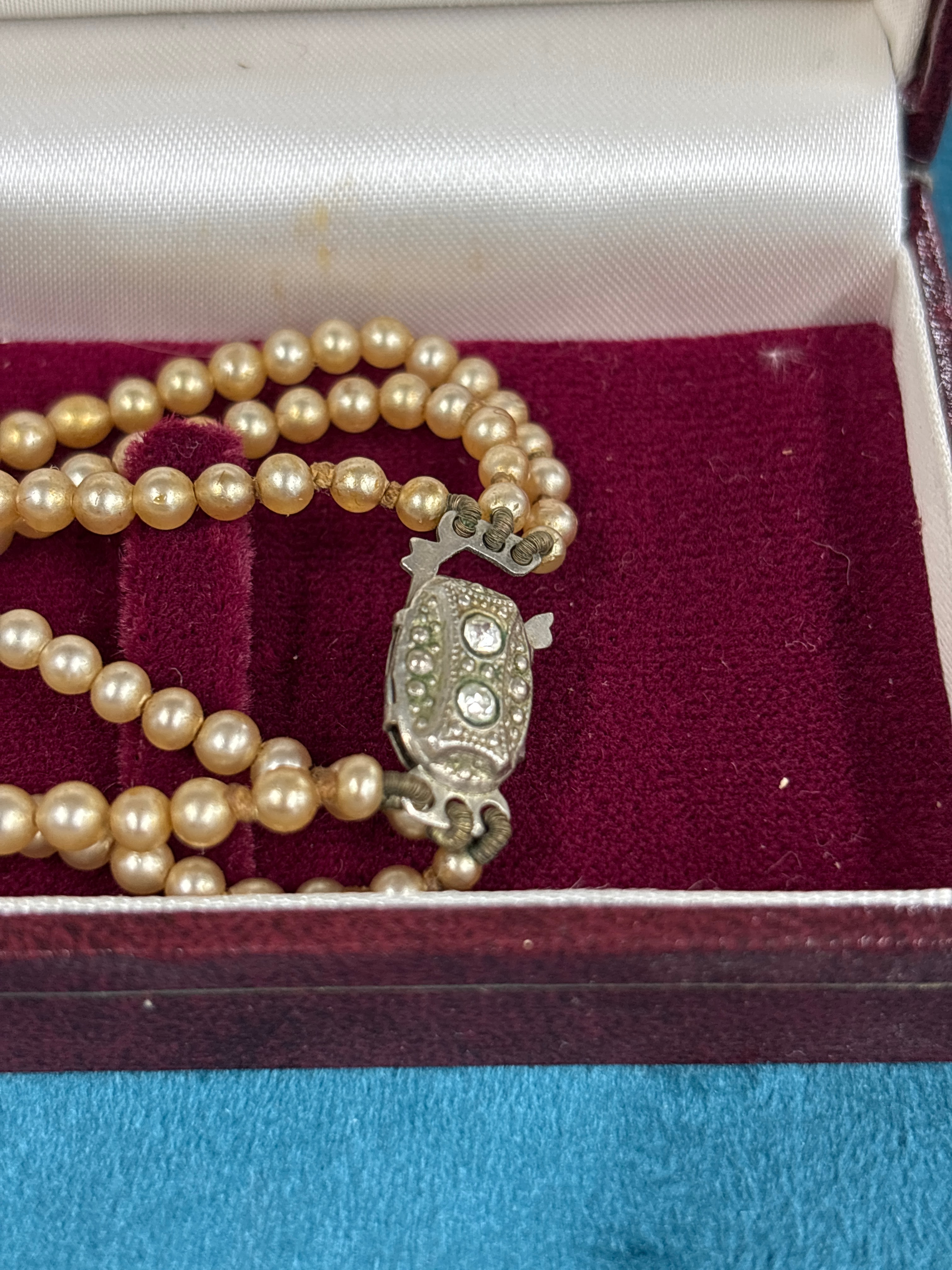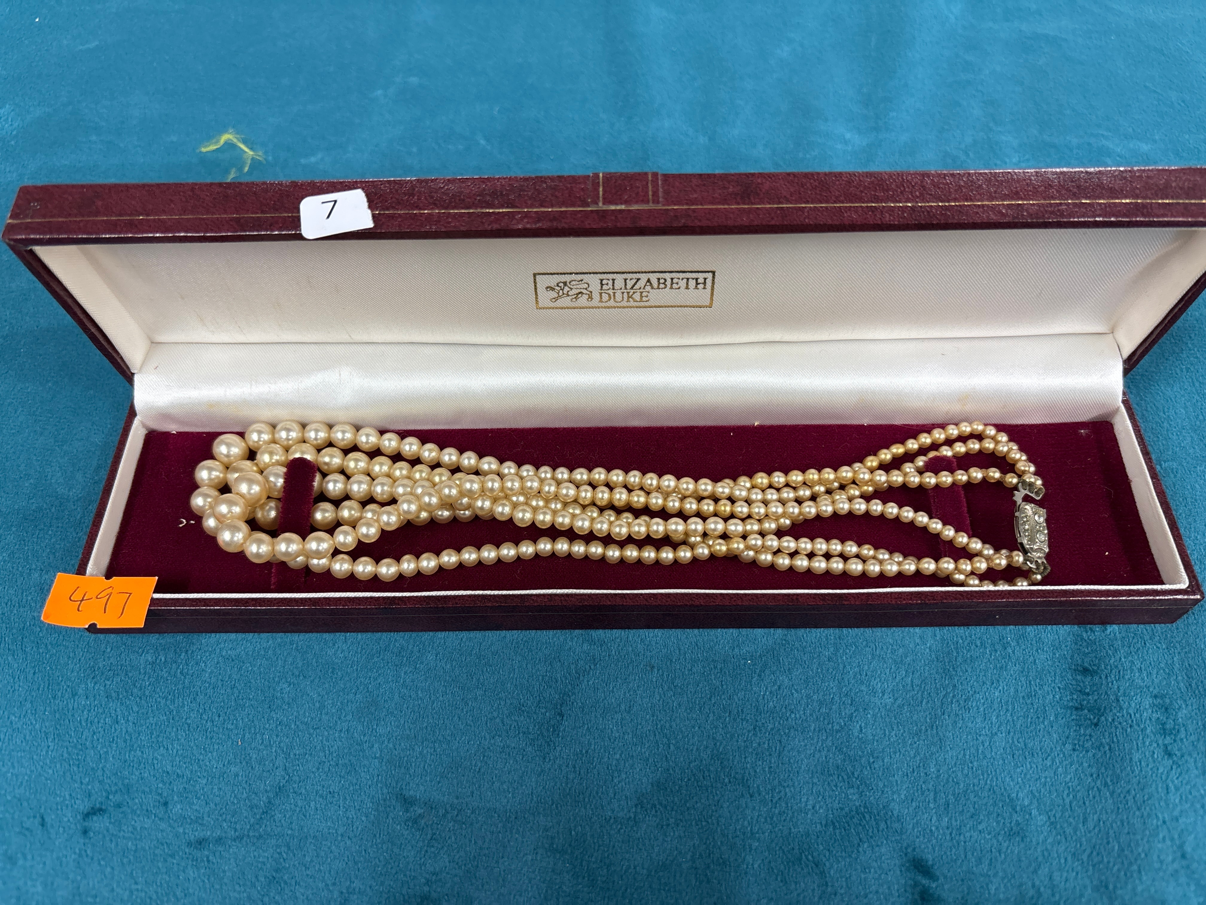Lot 497: A Vintage Elizabeth Duke Five-Strand Faux Pearl Necklace with Paste Clasp, in Original Box