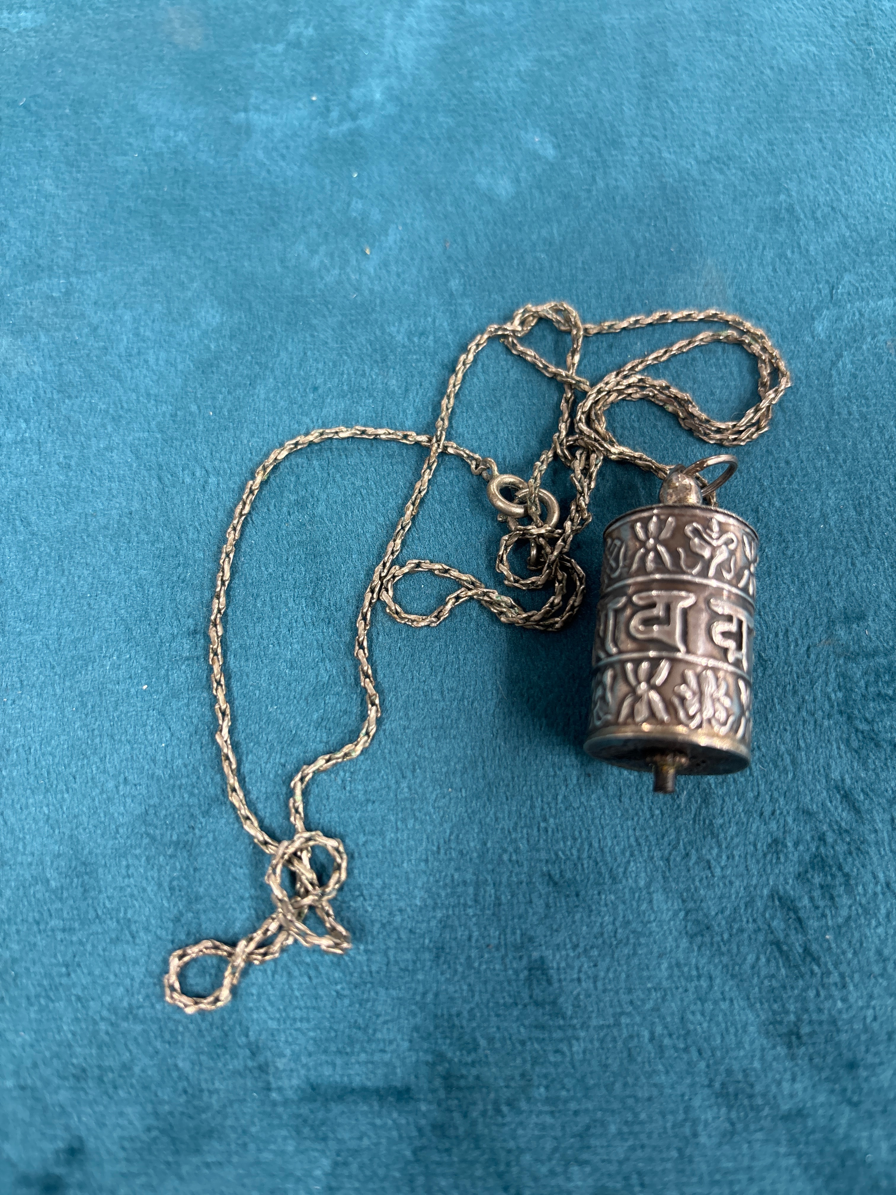 Lot 506: A Tibetan Sterling Silver Prayer Wheel Pendant Necklace