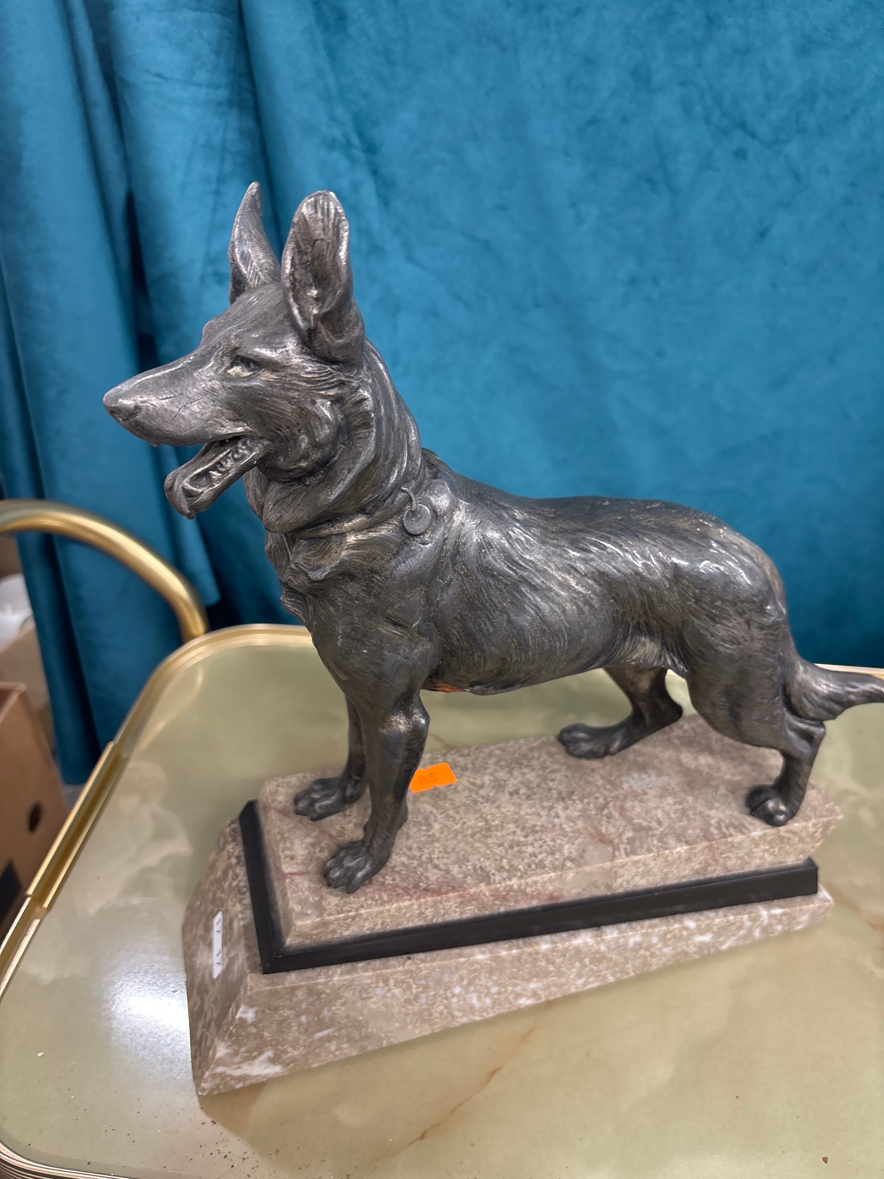 A Mid-Century French Spelter German Shepherd Sculpture on Marble Base