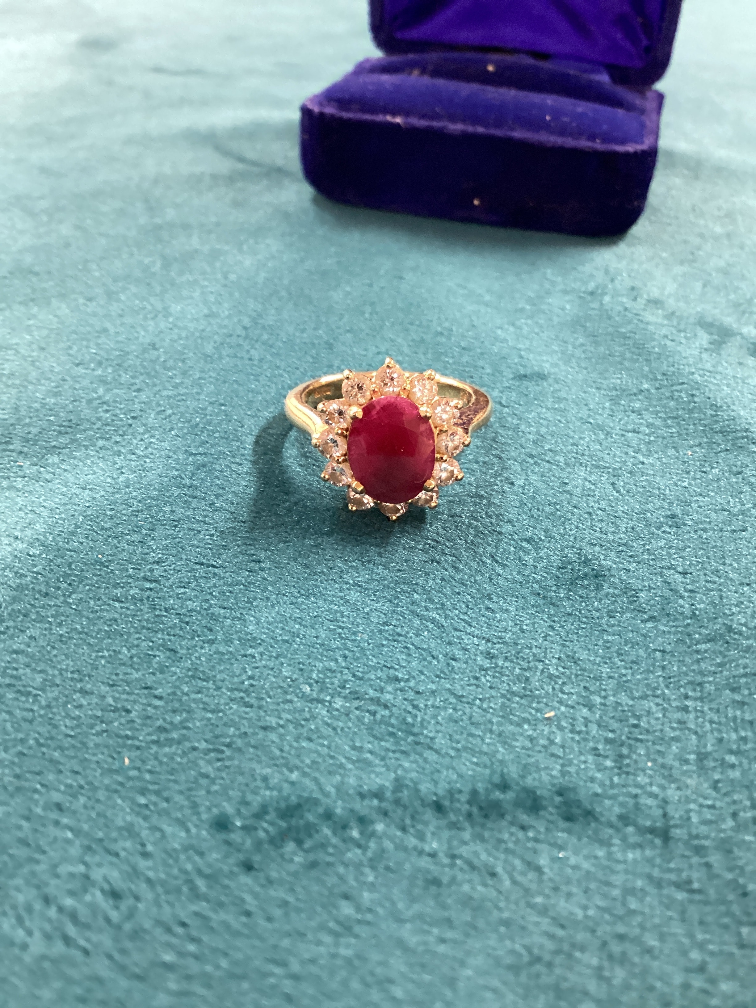 18K Yellow Gold Ruby and Diamond Halo Ring