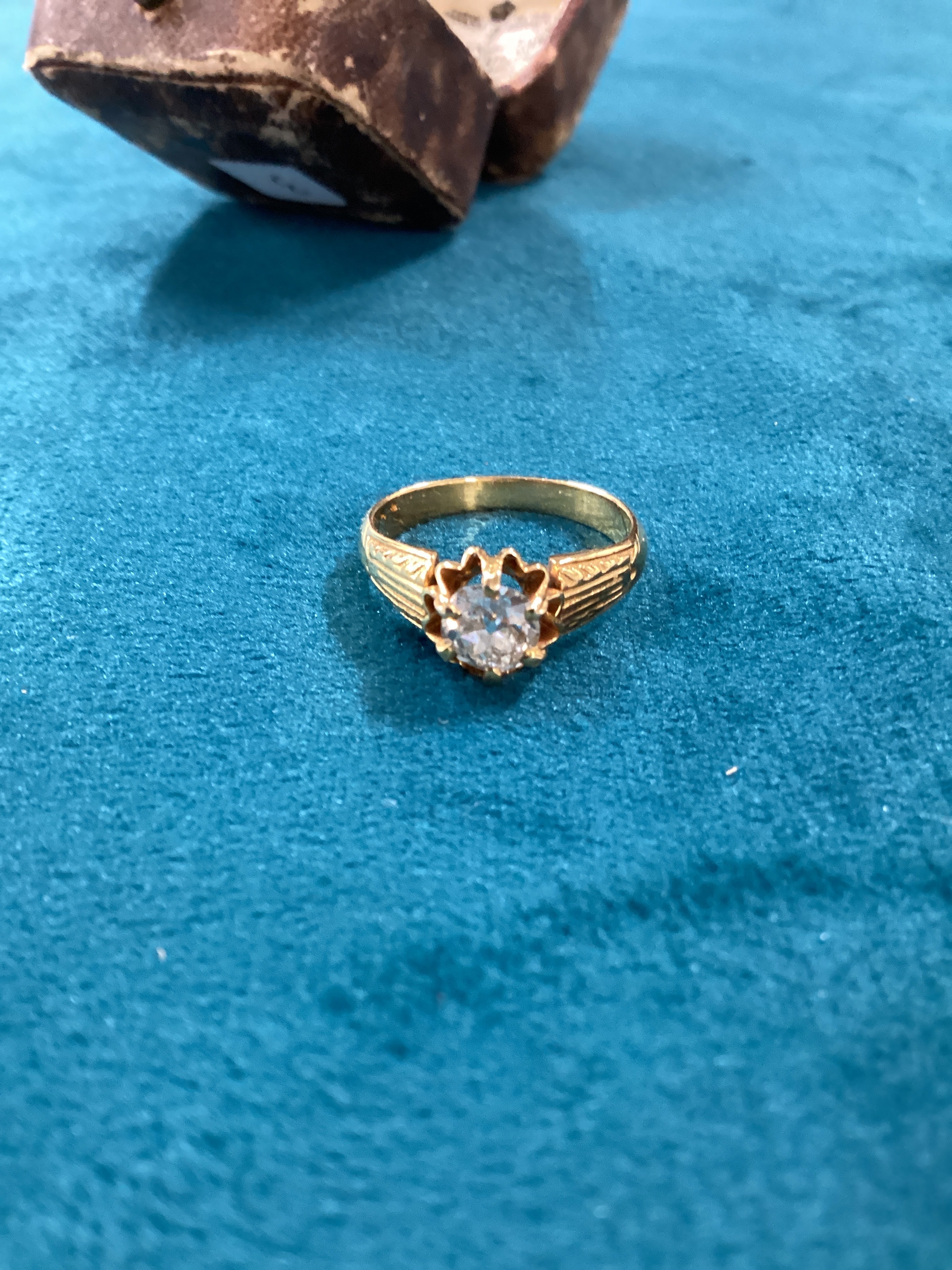 A Victorian 18K yellow gold with 3/4 carat diamond solitaire ring. Weight 3.62g