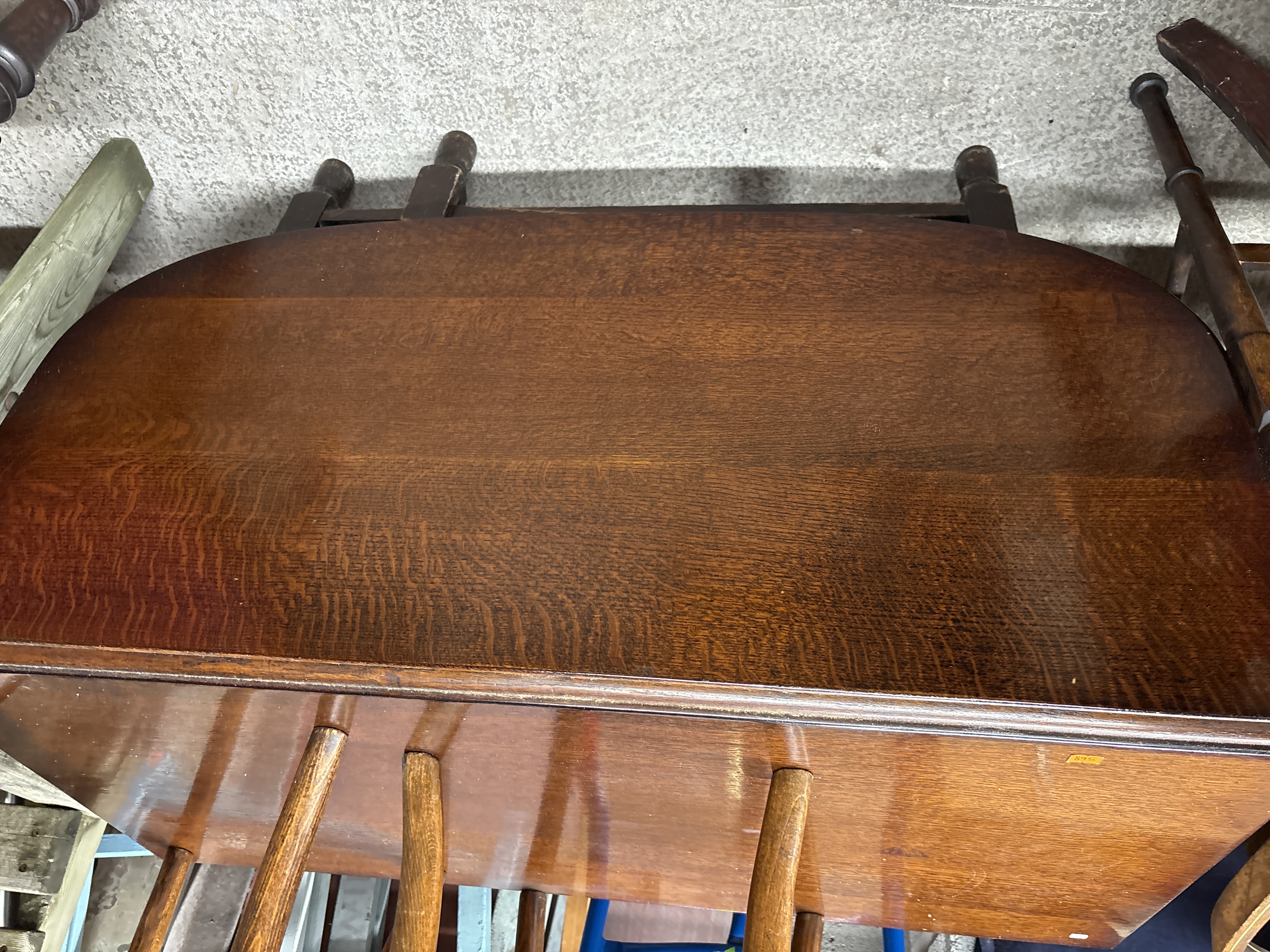 An oak gate-leg drop-leaf dining table featuring a dark reddish-brown finish.
