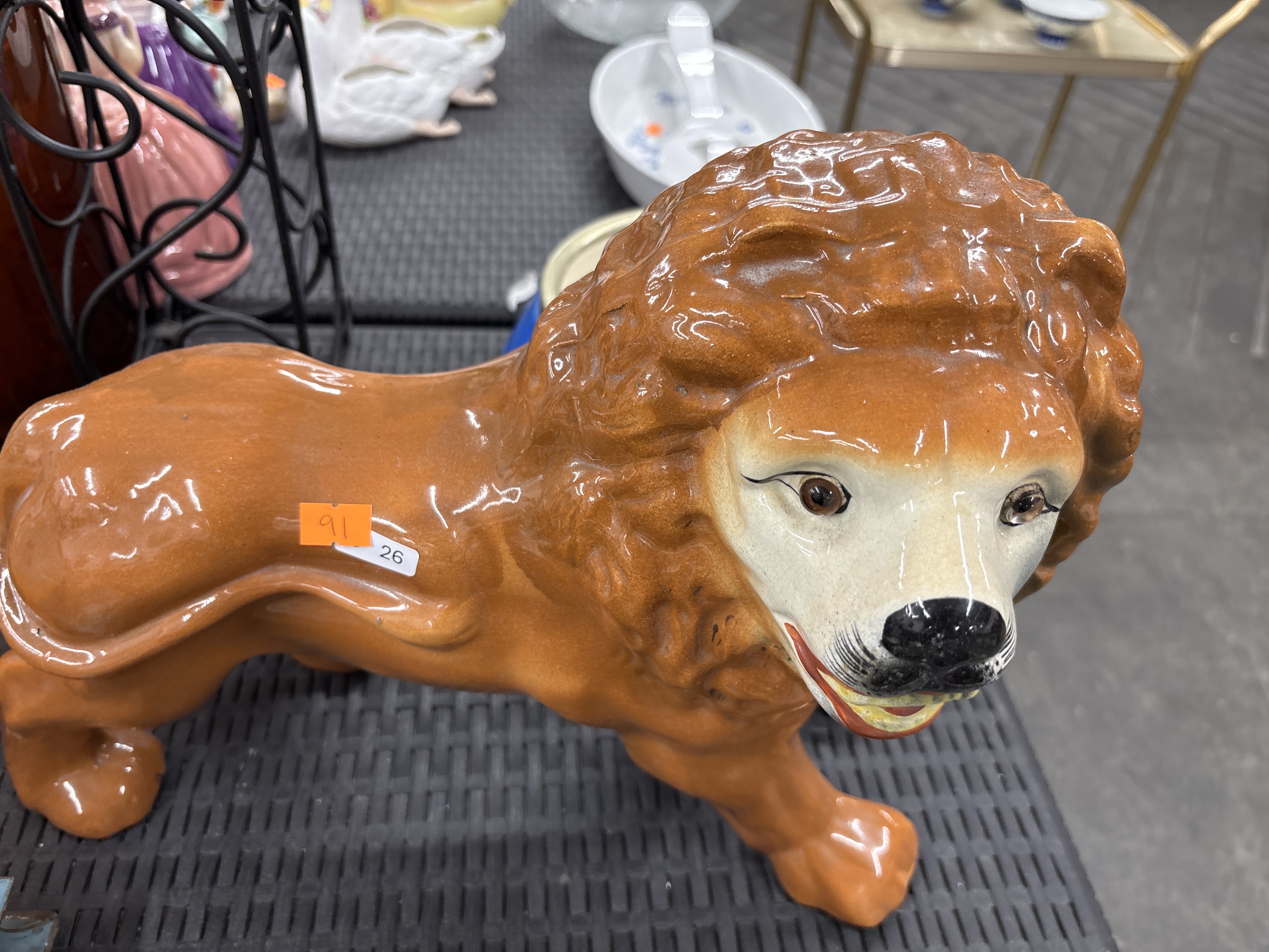 Lot 91: A Large Staffordshire Glazed Ceramic Lion Figurine with Glass Eyes