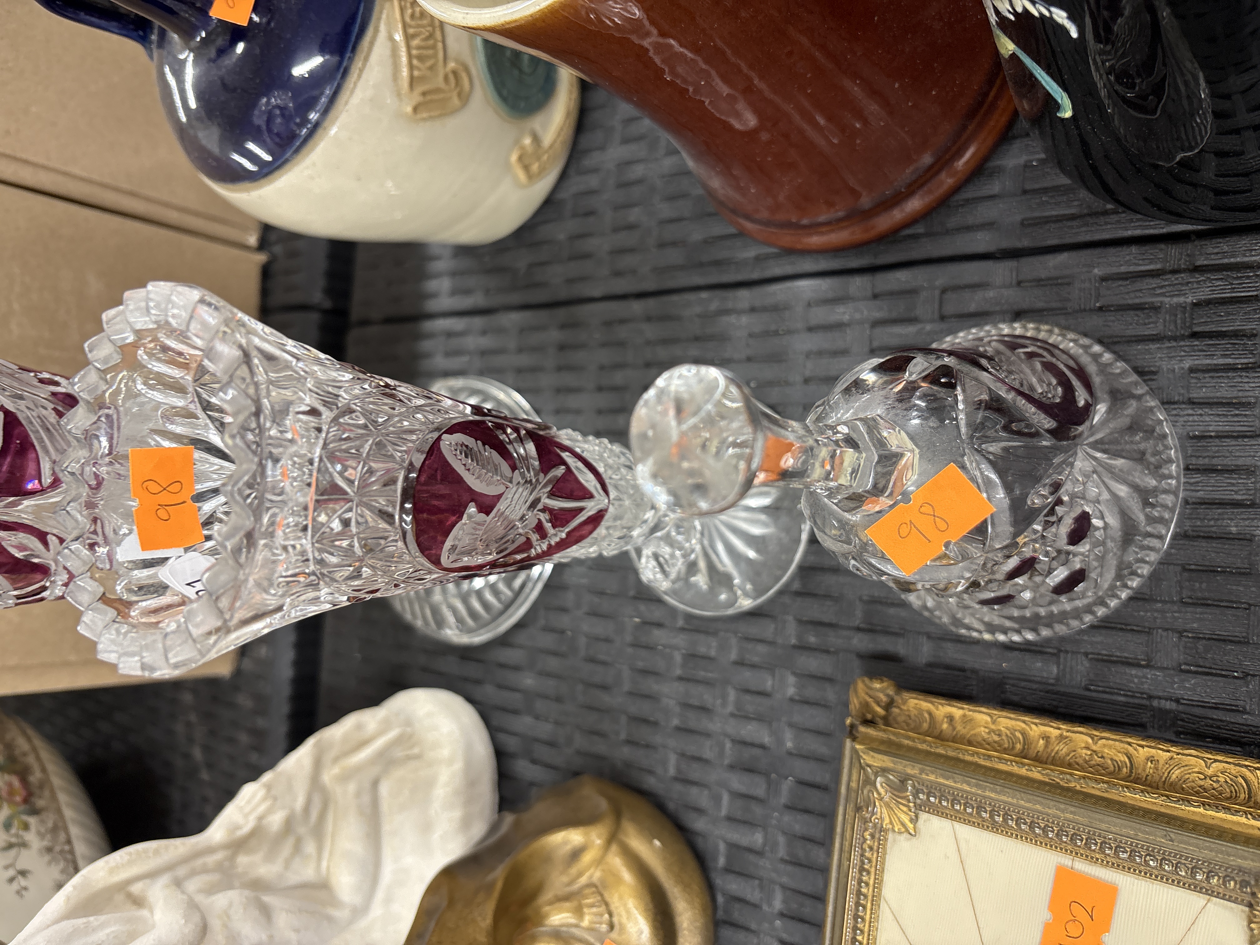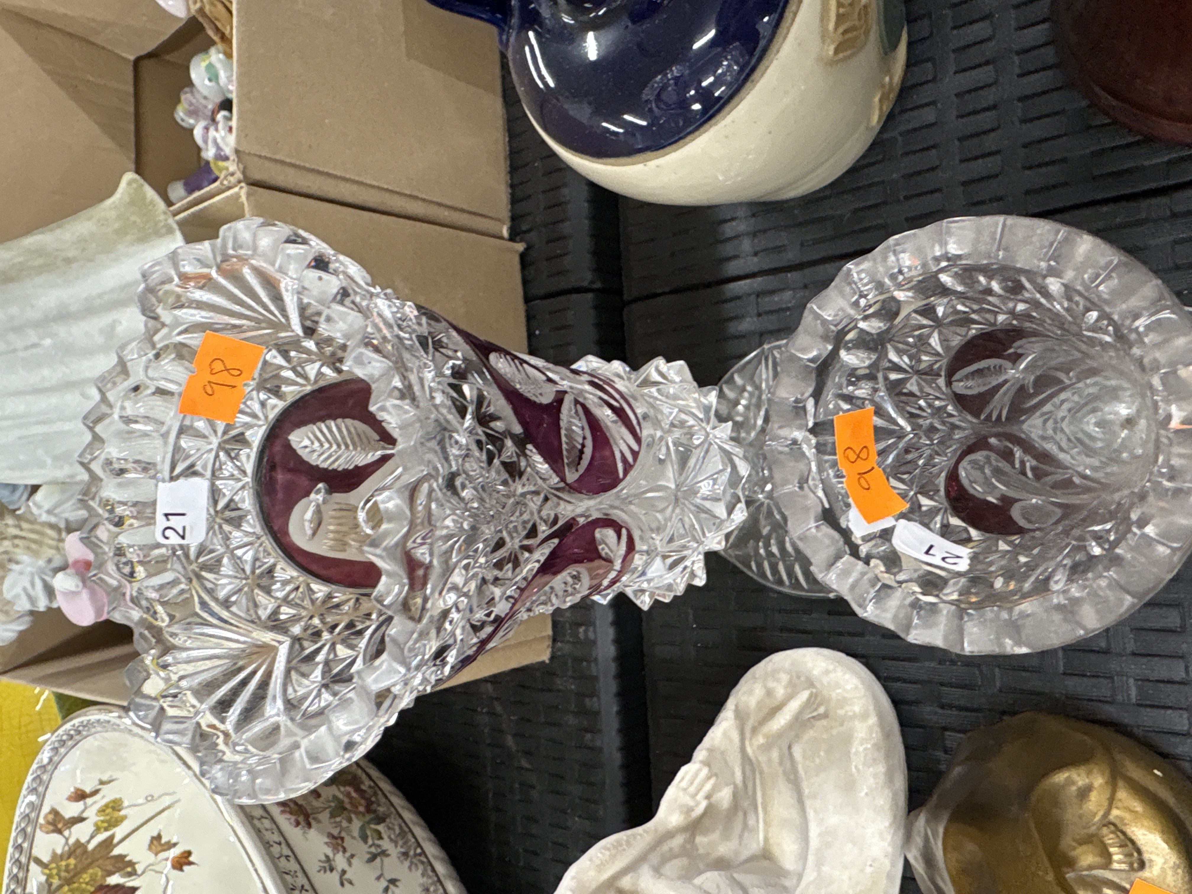 Lot 98: A Pair of Hofbauer Byrdes Pattern Ruby Flashed Lead Crystal Vases