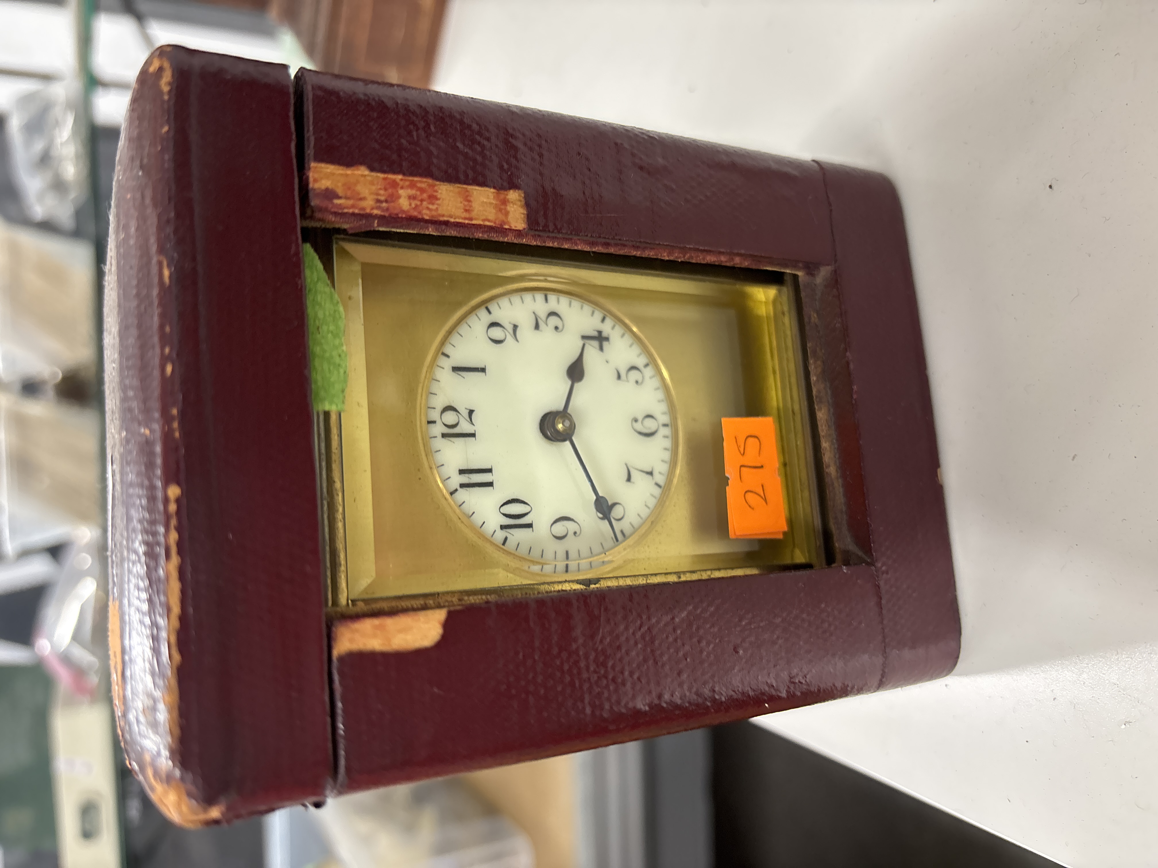 Lot 275: A French style miniature brass carriage clock in a maroon leatherette travel case