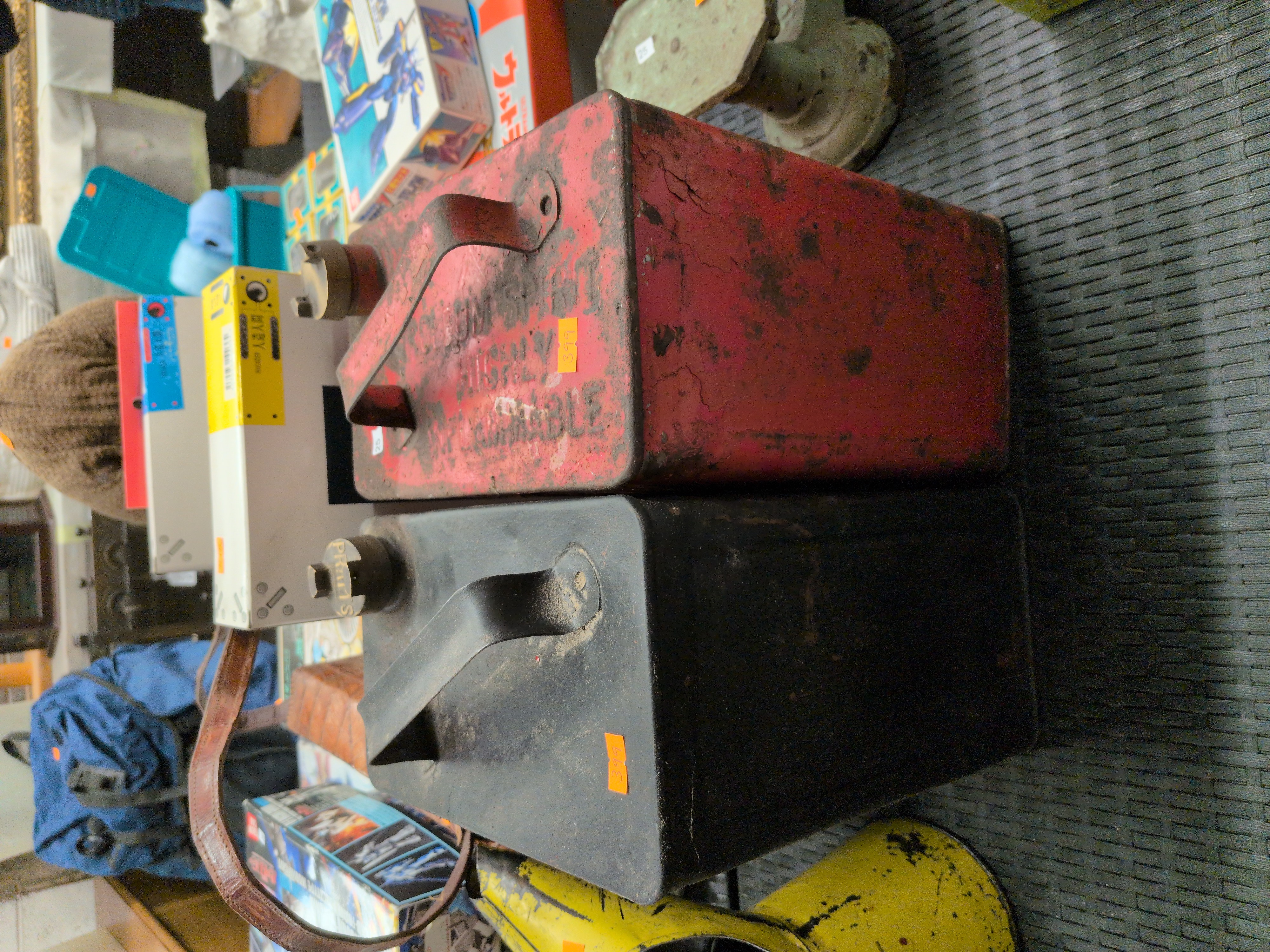 Lot 399: An Assortment of Early 20th Century Petroliana including Two Pratts Petrol Cans and Two Oil Measures